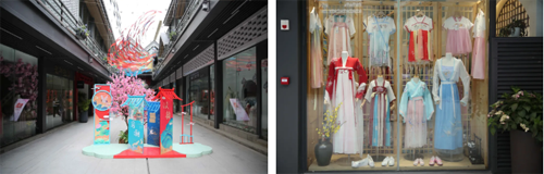 隨后,參會(huì)嘉賓與院校師生們一起參觀洋溢著國(guó)風(fēng)古韻的“池上錦”漢服特色產(chǎn)業(yè)街區(qū),并與街區(qū)品牌商戶進(jìn)行互動(dòng)交流,體驗(yàn)漢服文化的豐厚底蘊(yùn)。