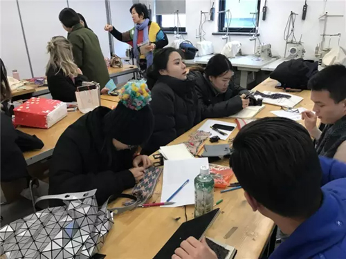大賽組委會到達中央美院時裝教室的時候,同學們馬上放下手頭上的面料改造作業,進入了聽講狀態,并針對賽事相關情況一一進行詢問。