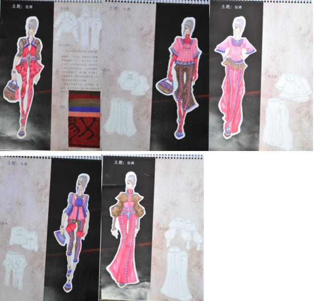 本系列作品靈感來源于苗族的經(jīng)典圖案——太陽紋,溫暖的陽光照耀并祝福著每一個人。通過對這一元素的運用,添加民族的色彩,更是渾然天成與自然和諧的統(tǒng)一。讓我在解構(gòu)與結(jié)構(gòu)間找到了一種力量,即民族又不失時尚感,更是很好地體現(xiàn)出一個民族豐富多姿的文化底蘊。