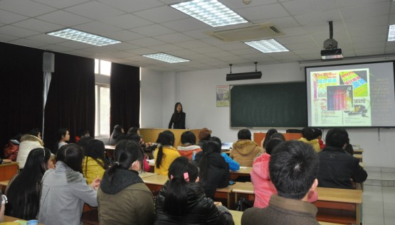 ![]() 題為“炫·夢”的主題宣講活動一開場,“常熟服裝城杯”大賽組委會負(fù)責(zé)人顧徐佳就以幽默的主持風(fēng)格吸引了大家的目光,并就本次休閑裝創(chuàng)意設(shè)計大賽的基本問題與在場同學(xué)進(jìn)行互動。同學(xué)們熱情踴躍,組委會還為每一位熱心參與活動的同學(xué)贈送精美畫冊禮品。