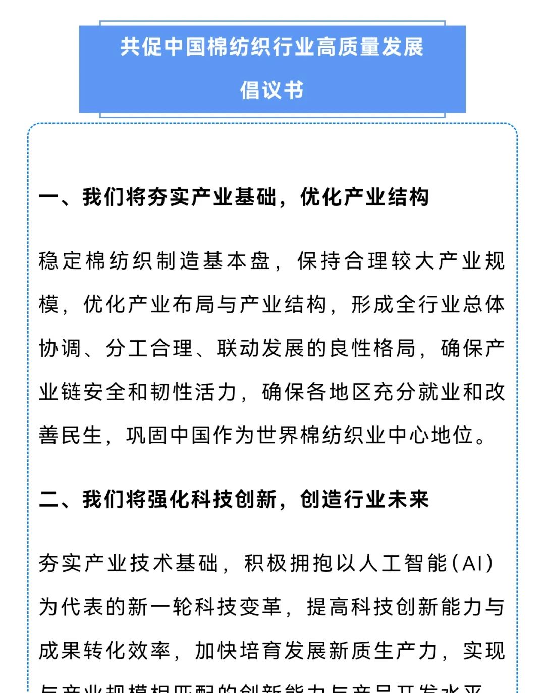今年6月,中國棉紡織行業協會在新疆喀什召開的2025年中國棉紡織大會上,發布了“共促中國棉紡織行業高質量發展倡議書”。在該倡議書中提到,棉紡行業將穩定棉紡織制造基本盤,保持合理較大產業規模,優化產業布局與產業結構。特別提及行業將全面融入全國統一大市場建設,破除“內卷式”競爭,讓不同地區、不同規模的企業各展所長,共同發展,合作共贏,奉行長期主義,激發創新活力,把更多資源集中到技術創新、產品創新、管理創新上來,促進市場公平,提高發展效能。