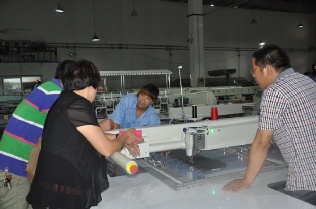 在產學研展廳,技術人員給客戶實際操作了全自動模板縫紉機,得到了客戶的認可,之后客戶還參觀了寶盈廠區所有的機器,客戶對我們工廠既專業,又正規的產品技術得到了認可!(王聰) |