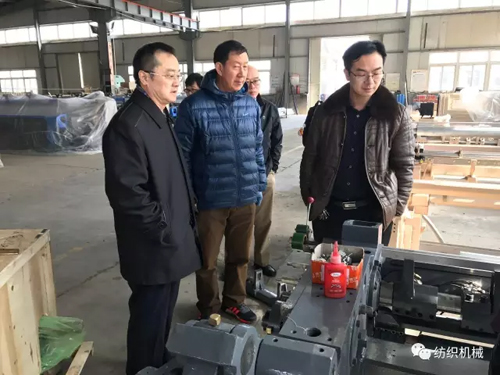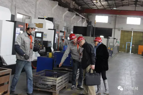 期間,調(diào)研組一行在朝隆紡機董事長陳連忠等同事的陪同下,在生產(chǎn)車間和加工車間進行了參觀考察。