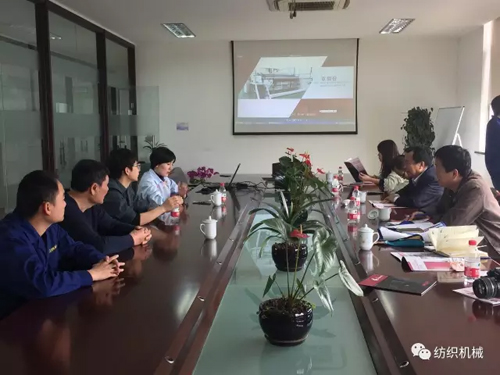 調(diào)研組在中寶科技。 在浙江中寶針織科技有限公司,調(diào)研組一行聽取了該公司總經(jīng)理俞晶橋進行的2016年企業(yè)運行情況介紹,以及企業(yè)對于當前市場狀況的分析與思考。據(jù)悉,該公司業(yè)務涉及針織機械裝備、紡機專件、制冷元器件、數(shù)字自動化技術、精密鈑金件等,在襪機產(chǎn)品領域該公司正不斷發(fā)力提升產(chǎn)品技術競爭力,持續(xù)擴大產(chǎn)品市場。交流期間,針對海外市場機會進行了深入溝通,俞晶橋則通海外市場的實際走訪感受同調(diào)研組分享了印度、土耳其等國家的市場機會與挑戰(zhàn)。對于企業(yè)的可持續(xù)發(fā)展,從設備的品質(zhì)、品牌到品種都進行了交流,并提出創(chuàng)新對于企業(yè)發(fā)展的意義和價值。 織造調(diào)研組 中國紡機協(xié)會產(chǎn)業(yè)二部(織造)調(diào)研組一行四人由秘書長徐林帶隊展開了青島地區(qū)紡織機械企業(yè)的走訪。 第一站 :青島海佳機械有限公司