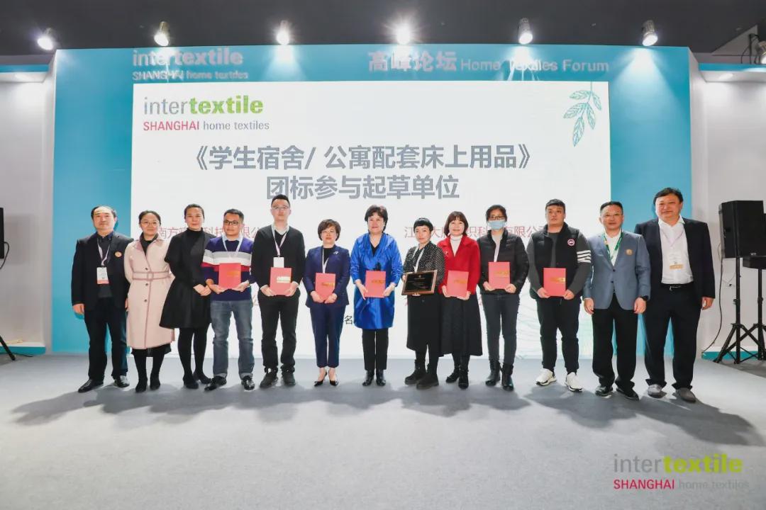 樹行業(yè)標(biāo)桿,推行業(yè)標(biāo)準(zhǔn),《學(xué)生宿舍/公寓配套床上用品》團(tuán)體標(biāo)準(zhǔn)的成功制定離不開參與起草單位付出的大量努力,領(lǐng)導(dǎo)嘉賓們?yōu)?6家起草單位頒發(fā)了證書。