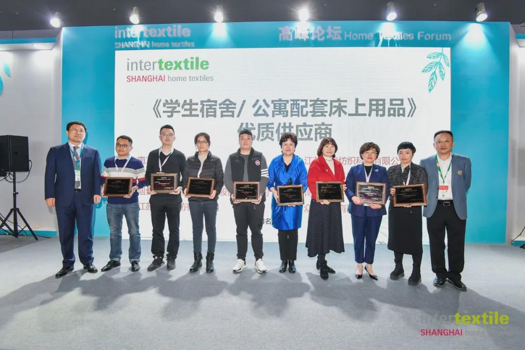 規(guī)范學(xué)生床品市場(chǎng),質(zhì)量當(dāng)頭。中國紡織工業(yè)聯(lián)合會(huì)副會(huì)長、中國家用紡織品行業(yè)協(xié)會(huì)會(huì)長楊兆華,中國國際貿(mào)易促進(jìn)委員會(huì)紡織行業(yè)分會(huì)常務(wù)副會(huì)長梁鵬程為南方寢飾科技有限公司、江蘇大唐紡織科技有限公司、羅萊生活科技股份有限公司、上海妙宅科技發(fā)展有限公司、煙臺(tái)明遠(yuǎn)創(chuàng)意生活科技股份有限公司、南通尊客家紡發(fā)展有限公司、江蘇雅樂家紡有限公司、眾地家紡有限公司頒發(fā)了“學(xué)生公寓配套床上用品”優(yōu)質(zhì)供應(yīng)商銅牌。