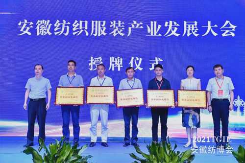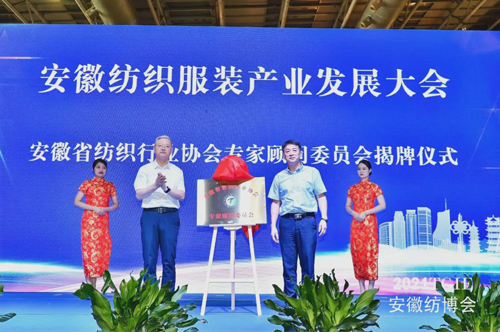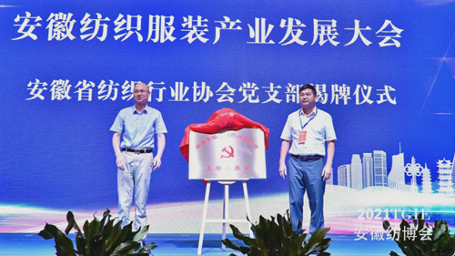 現場舉行安徽省紡織行業協會揭牌儀式、安徽省紡織行業協會黨支部揭牌儀式、安徽省紡織行業協會專家顧問委員會揭牌儀式、中國紡織服裝大數據中心(安徽中心)揭牌儀式。為協會會長、執行會長、監事會主席、常務副會長、會長、監事會副主席授牌。