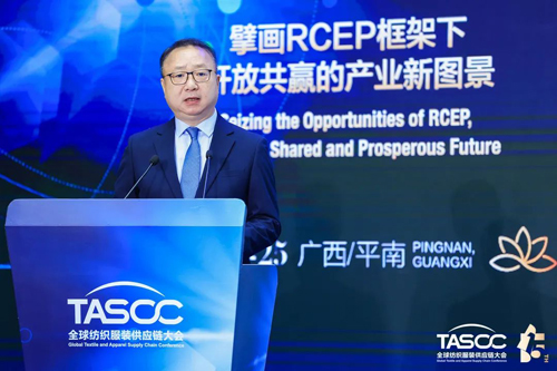 國際紡織制造商聯合會主席、中國紡織工業聯合會會長孫瑞哲在會上作《擘畫RCEP框架下開放共贏的產業新圖景》主旨演講。他指出,維護全球產業鏈供應鏈韌性和穩定、尋找供應鏈發展的動力和空間,符合世界人民、全球產業的共同利益。紡織行業的發展對于中國式現代化的穩步推進具有重要意義,是民生的壓艙石,是區域經濟發展的先導產業,是不確定國際環境中實現國際合作確定性的重要力量。