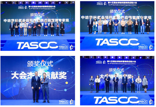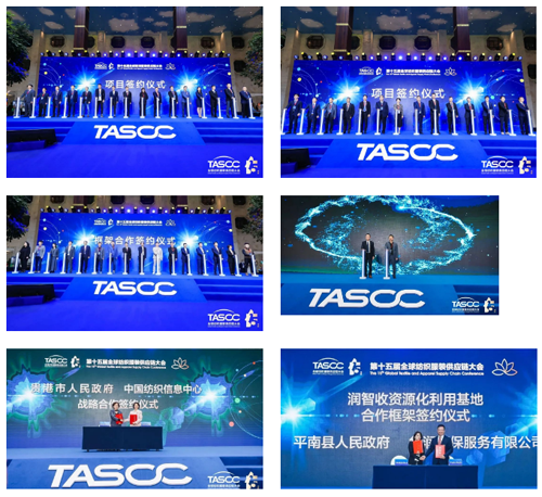 ![]() 圍繞振興地方經濟、促進行業發展、深化產業融合、表彰行業榮譽,會上舉行了26個重大項目合作(總投資額166億元)簽約儀式、“中國(貴港)紡織服裝時尚新區意向合作框架協議簽約儀式”、“共建中國紡織信息中心紡織服裝供應鏈研究院戰略合作簽約儀式”、“潤智收資源化利用基地項目合作框架協議簽約儀式”、“推進貴港市紡織服裝產業高質量發展戰略合作協議簽約儀式”、“中紡學標委會紡織服裝供應鏈管理專家組專家證書頒發儀式”、“第十五屆全球紡織服裝供應鏈大會貢獻獎頒獎儀式”等多項儀式活動。