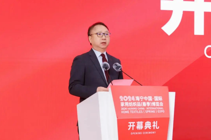 ![]() 在與會(huì)人員的共同見(jiàn)證下,中國(guó)紡織工業(yè)聯(lián)合會(huì)會(huì)長(zhǎng)孫瑞哲,中國(guó)工程院院士、浙江理工大學(xué)校長(zhǎng)陳文興,中國(guó)紡織工業(yè)聯(lián)合會(huì)秘書(shū)長(zhǎng)夏令敏,中國(guó)紡織工業(yè)聯(lián)合會(huì)副會(huì)長(zhǎng)楊兆華等領(lǐng)導(dǎo)嘉賓共同啟動(dòng)2024海寧中國(guó)·國(guó)際家用紡織品(春季)博覽會(huì),開(kāi)啟海寧家紡產(chǎn)業(yè)的絢爛新篇章。