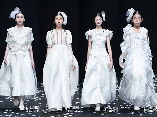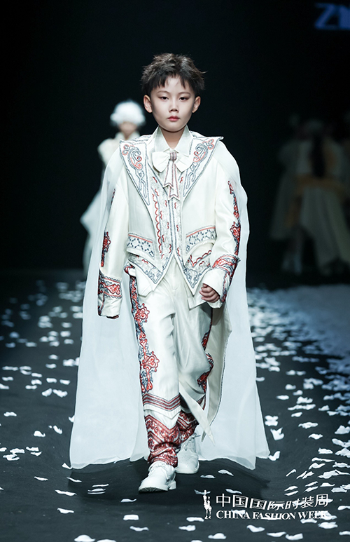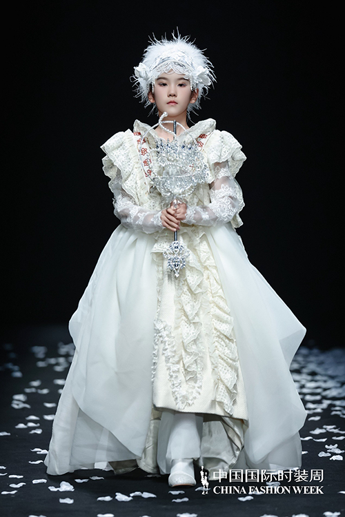 ![]() 結合發布主題,設計師將全場服裝設計以白色為主色調,根據主人公角色與故事的演變,通過顏色的不同變化與設計結構的拼接,詮釋來自這個冰雪國度孩童們的雪國形象。愿孩童們在雪白無瑕的冰凝界中,永不被干擾,享受愛與幸福,找到屬于自己的那片溫暖的雪國。