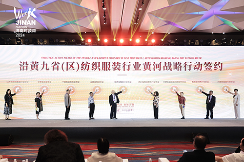 ![]() 本次大會期間還舉辦了隆重的“沿黃九省(區(qū))紡織服裝行業(yè)黃河戰(zhàn)略行動”簽約儀式,此舉象征著沿黃九?。▍^(qū))紡織服裝行業(yè)在共同愿景的引領(lǐng)下,將緊密團結(jié),攜手開啟中國紡織服裝發(fā)展新征程。
