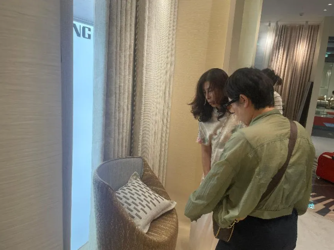 ![]() “作為一個有著二十多年歷史、合作客戶遍布全國以及中東、東南亞、澳大利亞、美國等海外市場的企業,我們發現,一個與風格和文化背景相呼應的好名字,不僅可以賦予窗簾以更多文化氣息,帶給人以情緒共鳴,也能夠促進產品銷量。而除了名字的特別構思外,我們每一款產品也都會經過五次設計,從紗線、紋樣,到內外簾搭配、簾頭設計,再到整體款式設計……致力于用差異化產品和與之呼應的名字,為空間設計師提供更多靈感。但同時面料風格又不是死板的,設計師完全能夠自由發揮做出其他的風格,來適配不同家居空間。”達洋國禮窗簾負責人吳先生向我們介紹。過程中,他也詳細闡述了如何將特種紗線與高精密織法結合,并通過噴染、鍛染等工藝實現不同提花、立體浮雕等效果,讓我們看到了這個22年品質堅守的中國家居產業軟裝產品領軍品牌的底蘊與創新,以及接得住任何挑戰與機遇的信心。“不管是平時,還是展會期間,我們時刻以最好的一面迎接客戶檢驗。”