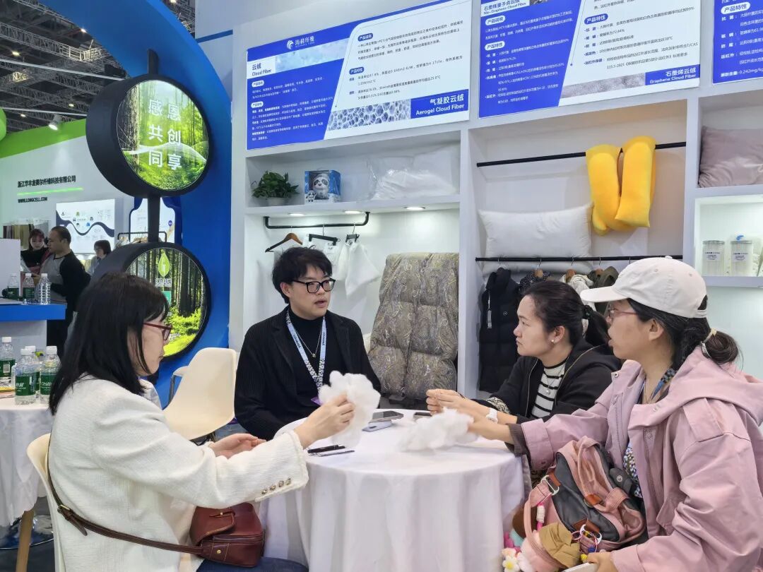 ![]() 江蘇海科總經(jīng)理李辰昊詳細介紹了“云絨”系列四大核心產(chǎn)品:石墨烯云絨、氣凝膠云絨、姜暖云絨、仿生發(fā)熱絨,聚焦輕質(zhì)鎖溫、主動健康、抑菌驅(qū)螨、遠紅外保健、仿生發(fā)熱等方向,標(biāo)志著再生填充纖維從“低端填充料”向“高端功能性材料”的躍升。
