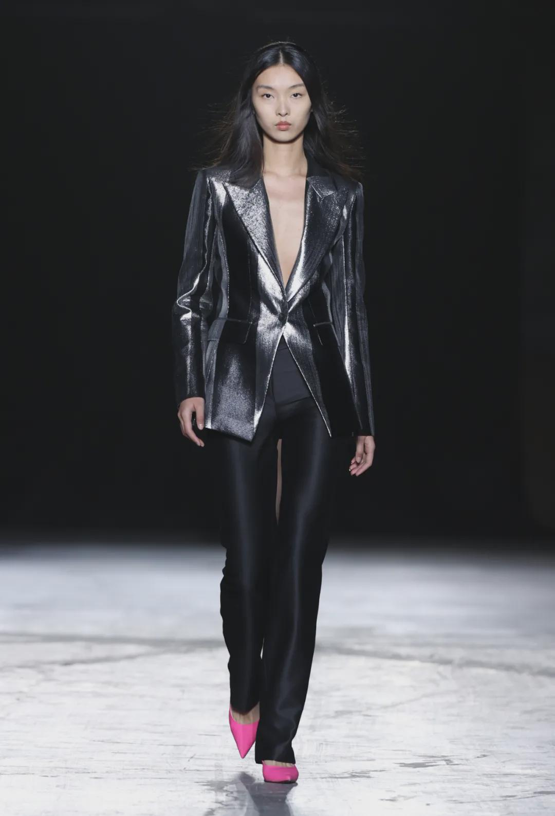 ![]() ![]() ![]() 本季設(shè)計(jì)師將實(shí)用主義與歐普夸張風(fēng)格相融合,在實(shí)穿的基礎(chǔ)上加入夸張的光效應(yīng)藝術(shù),中和了實(shí)用主義“無(wú)趣”的尷尬,耀眼光澤恰到好處,避免了日常穿搭中“用力過(guò)猛”的失衡。從過(guò)往生活汲取靈感,沉浸展現(xiàn)屬于當(dāng)下的思緒:打破規(guī)則,重組序列。系列色彩豐富,并通過(guò)羊毛與皮革,織錦與羽絨,絲綢與棉等等的材質(zhì)對(duì)比,來(lái)強(qiáng)調(diào)穿著的層次感。在服裝結(jié)構(gòu)處理上更加突出身材比例,上裝齊臀設(shè)計(jì)與高腰線下裝搭配,細(xì)節(jié)虛實(shí)關(guān)系處理,模糊年代感,讓穿著者可以跨越時(shí)空,感受當(dāng)下,并且隨意搭配,怎樣都行。