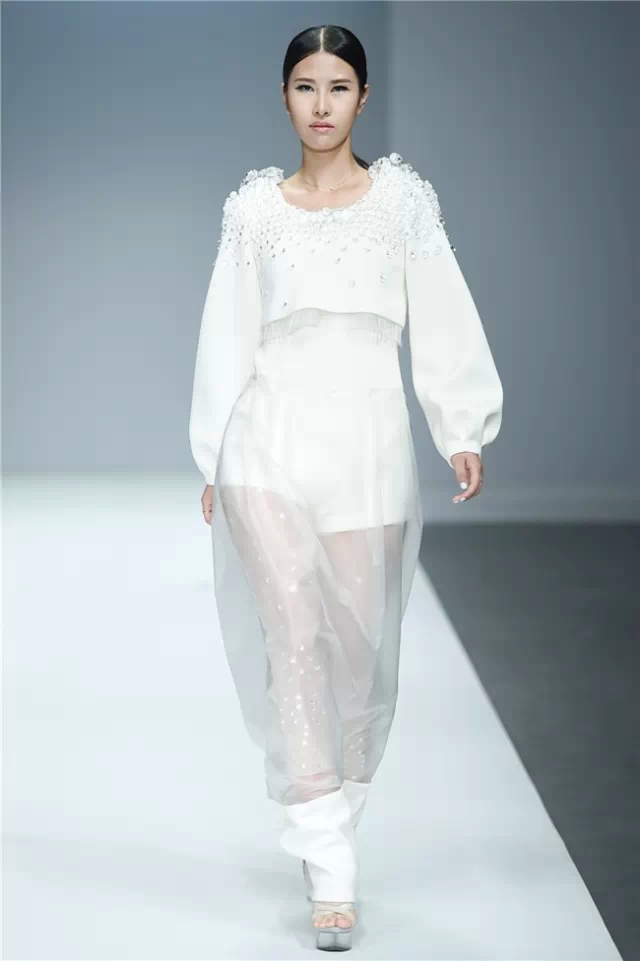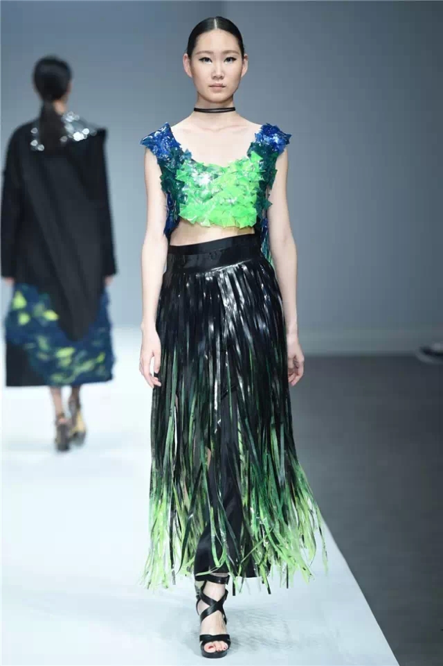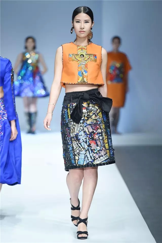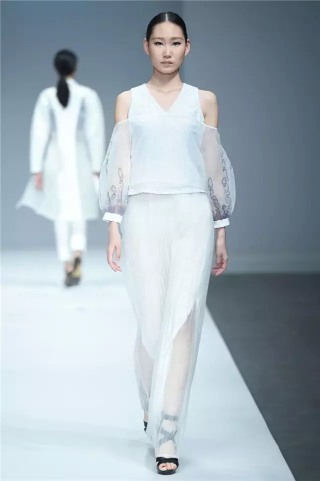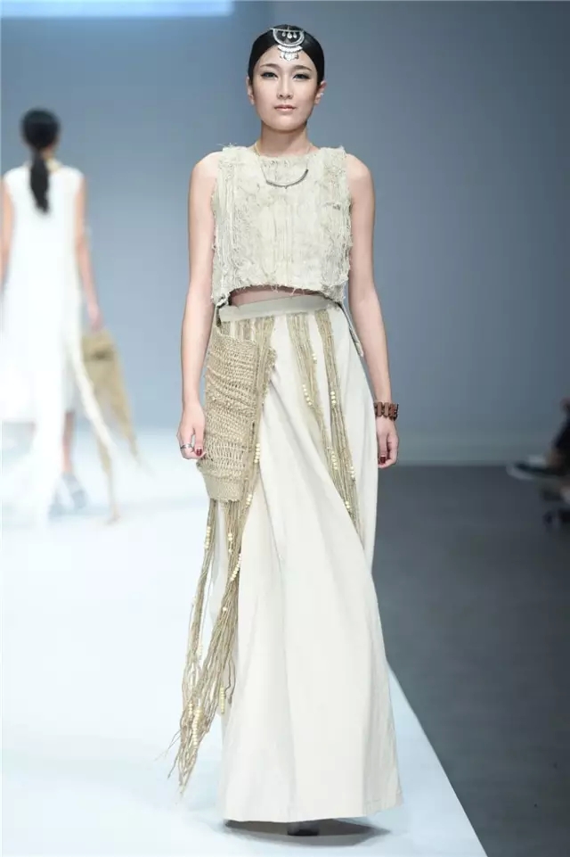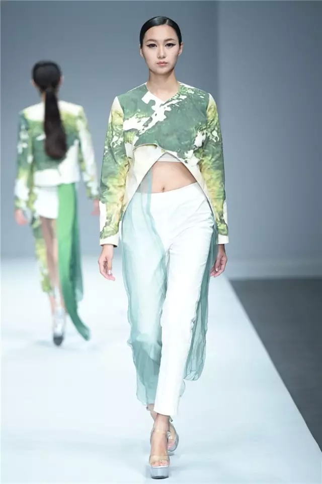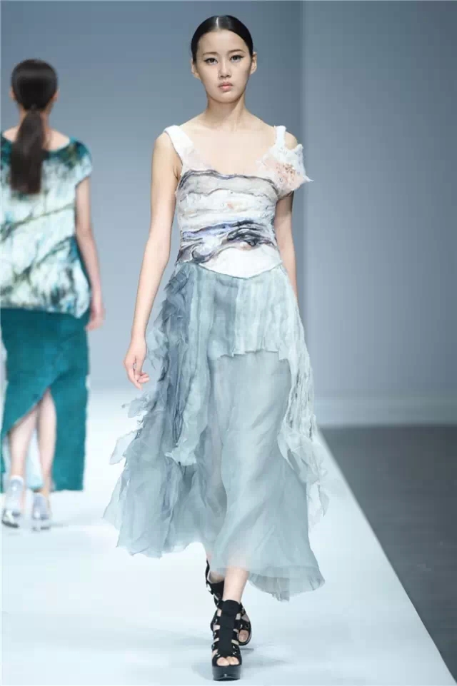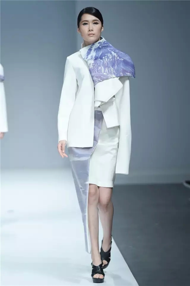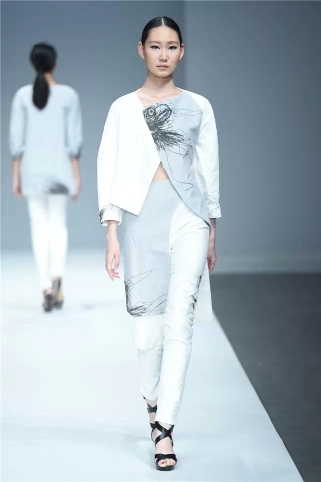 江漢大學設計學院畢業生作品發布以“袵·自在”為主題,26名畢業生的近70套作品亮相本屆中國國際大學生時裝周?!把G·自在”詮釋了用自在的態度釋放心跡、將不拘的襟懷流淌創意、重構傳統與西式服裝的概念、解讀歷史與時空的交互,是學子們執意創新的初衷所在。 以剛勁有力的舞蹈為開場,綜合“袵·自在”的主題,令人猜測這場秀是否將呈現不羈的力度。但從色彩和款型的搭配來看,這場秀似乎在傳達一種內斂的自在態度。細節上,涂鴉手繪、玻璃碎片、石頭材質和歐普藝術等元素強調了混搭重構的再現,模特腰間的水墨畫以及不對稱的肩部設計則在呼喚東西方文化解構的再融合。 有張有弛的自由象征著青春的軌跡走向成熟,而“喚醒新知”既是這些學生對于設計主題自覺的選擇,也是學生在畢業之際面對市場挑選交出的最后一份答卷。(黃天玉)