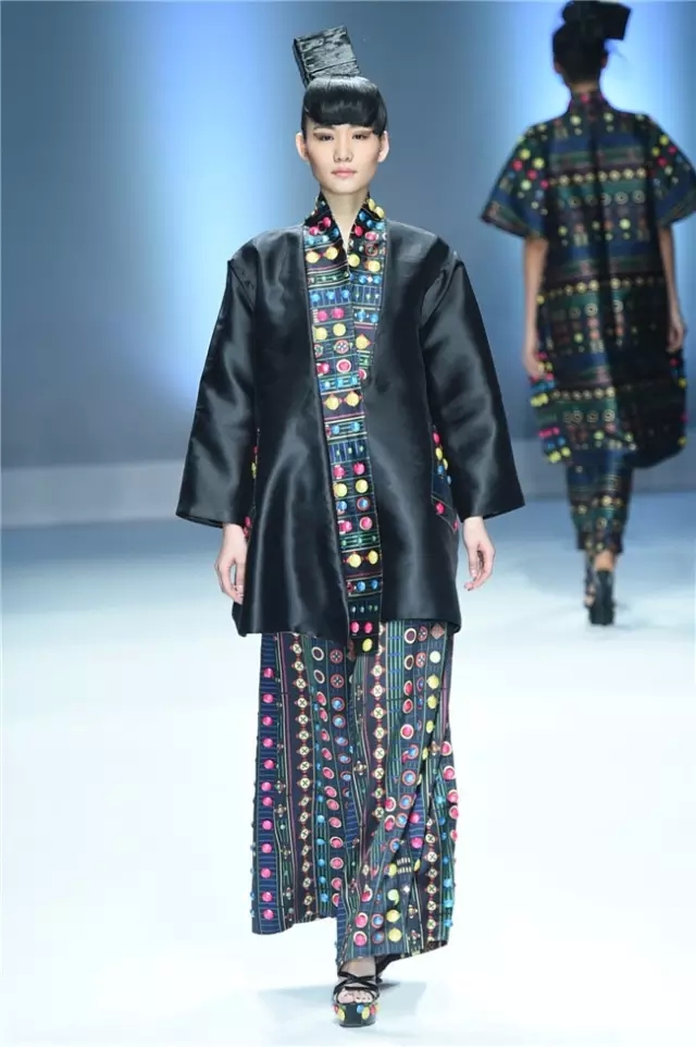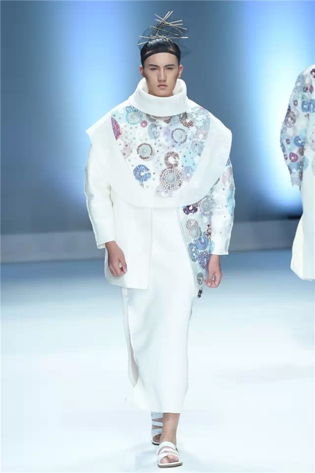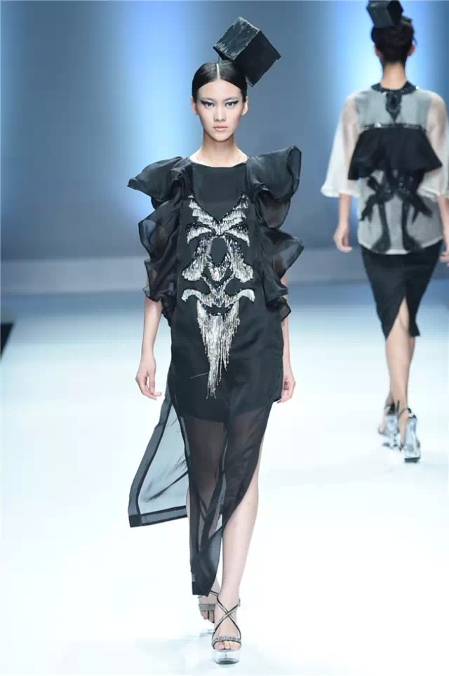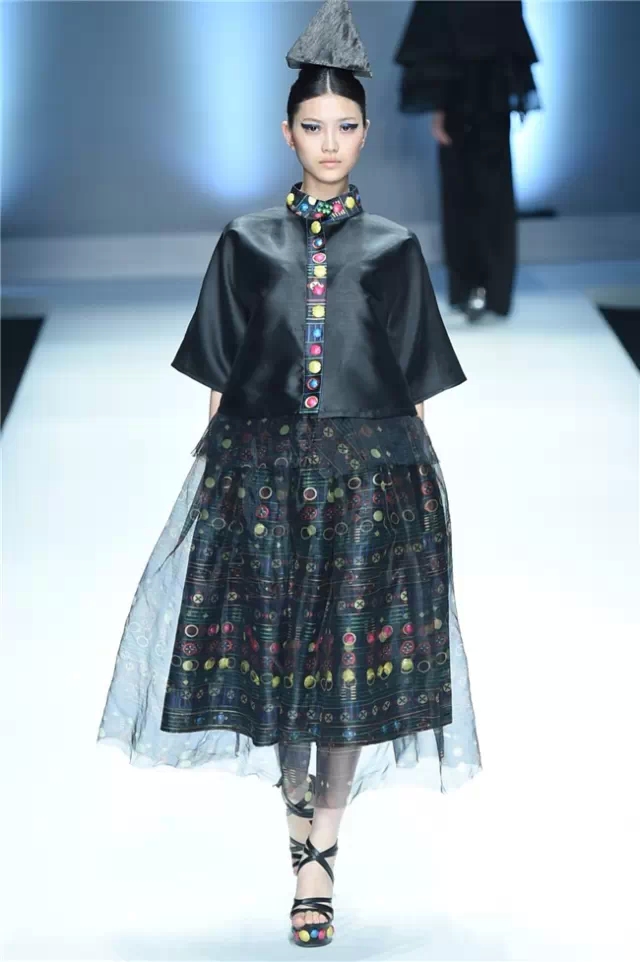 本次發布秀的設計主題是“和合”,從“和達科技、和愛人文及和處自然”三個方面,詮釋中華民族獨創的哲學概念。在和生、和處、和立、和愛的交融中,江西服裝學院的師生們用充滿創意的設計理念,構筑起設計理念的文化精髓,展示服飾之美。 服飾的設計亮點在于選擇以時代魅力和最高價值為藝術導向,將生活藝術與時尚融合,通過層次感的搭配、簡約的廓形和靈動的色彩,編織細膩的靚衣美裳。 伴隨著開場小模特悠緩的步伐,一場帶有民族哲學設計思想的發布秀拉開序幕。緊接著,音樂律動起來,服飾展示也豐富起來。服裝的整體色調統一,黑白、灰藍、墨綠低調不張揚,面料選擇則更多樣,飄逸的歐根紗、平實的圖案、立體刺繡,每一種元素和諧互補。模特佩戴的幾何狀頭飾也是整套系服裝的亮點。(王賽)
