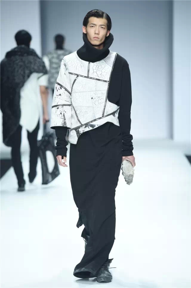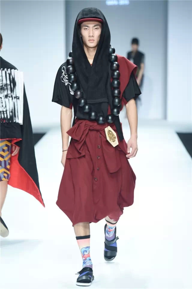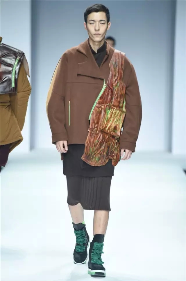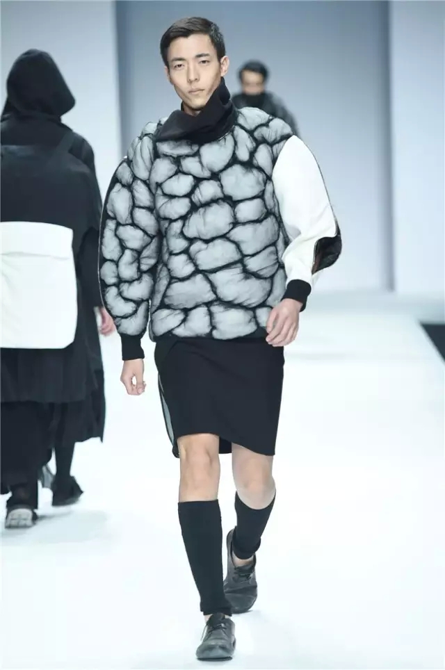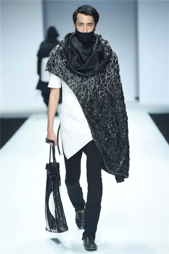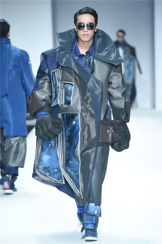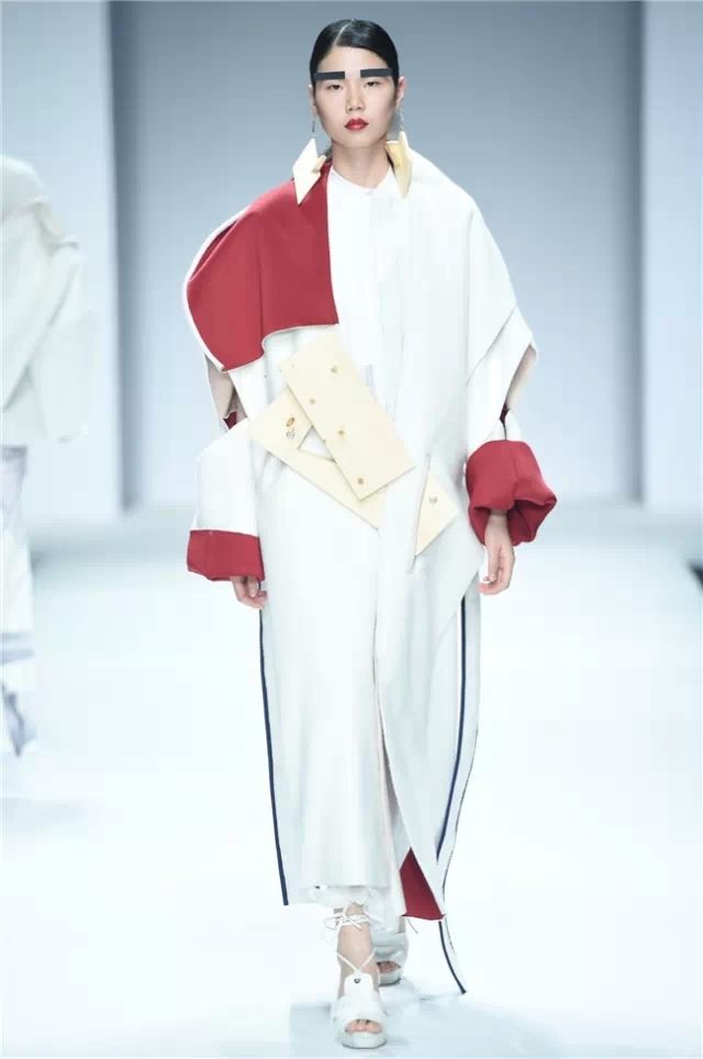不拘泥于一種表現,而是呈現出更多元的設計創想,展示學生們對于服裝設計的理解。服裝的形態可以更多元,表達也可以更充分。 正如發布會的主題SHOW TIME,這是學生們無限創意的展示時刻。在不同篇章中,服裝設計有夸張且飽和度極高的幽默裝飾圖案,有不對稱剪裁的結構狂想,也有用抽象幾何、無規則線性拼接的波普圖案。經典被重塑、顛覆,在盛年錦時中奢華碰撞妖嬈,摩登遇見民族,浪漫邂逅柔美。 開場一群陽光青年在T臺上站定,動感音樂與創意的設計共同激發著觀眾的感官。之后的展現更像是靈感碰撞的花火,藍色毛線編織的斗篷、未來感十足的發光服飾……面料再造、不規則的拼接、鏤空的設計、精靈般的演繹,表達語言豐富精彩。壓軸出場的名為Verve Museum(熱情博物館)的設計靈感源自馬蒂斯的畫作,設計師以毛粘、針粘的方式表現日本風,藝術感十足。 本場服裝不僅偏向成衣化,同時更注重服裝與穿著者之間的情感紐帶,達到了藝術性和實用性的平衡。學生們在追求原創設計與張揚個性時,也沒有忽視對市場的平衡。(王賽)