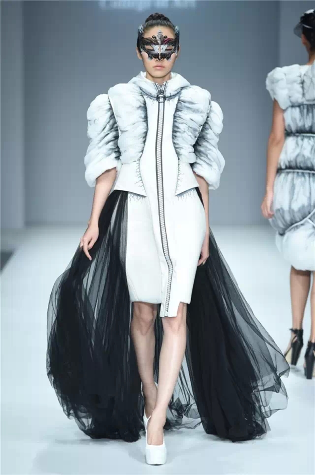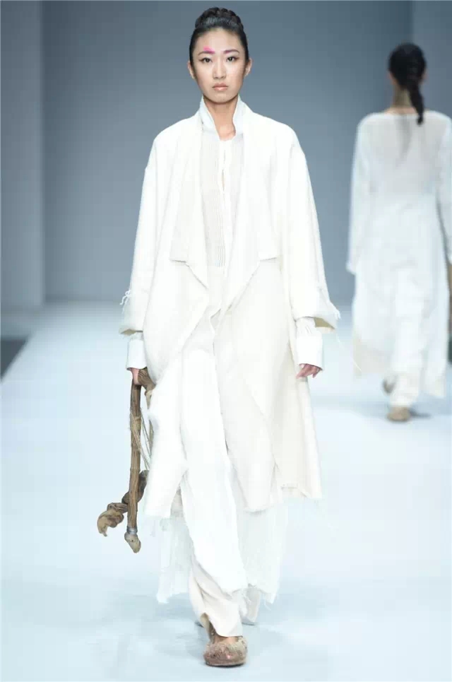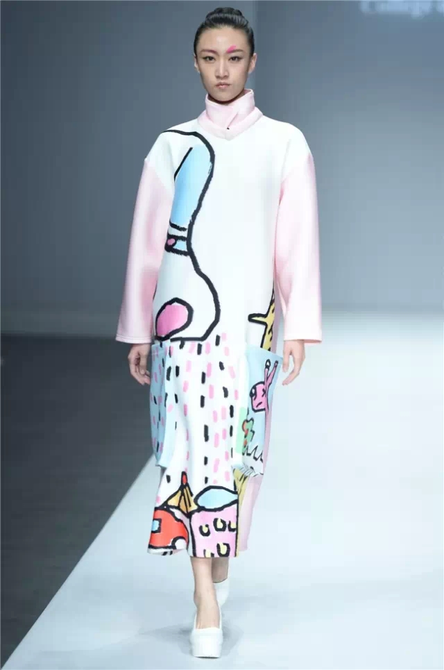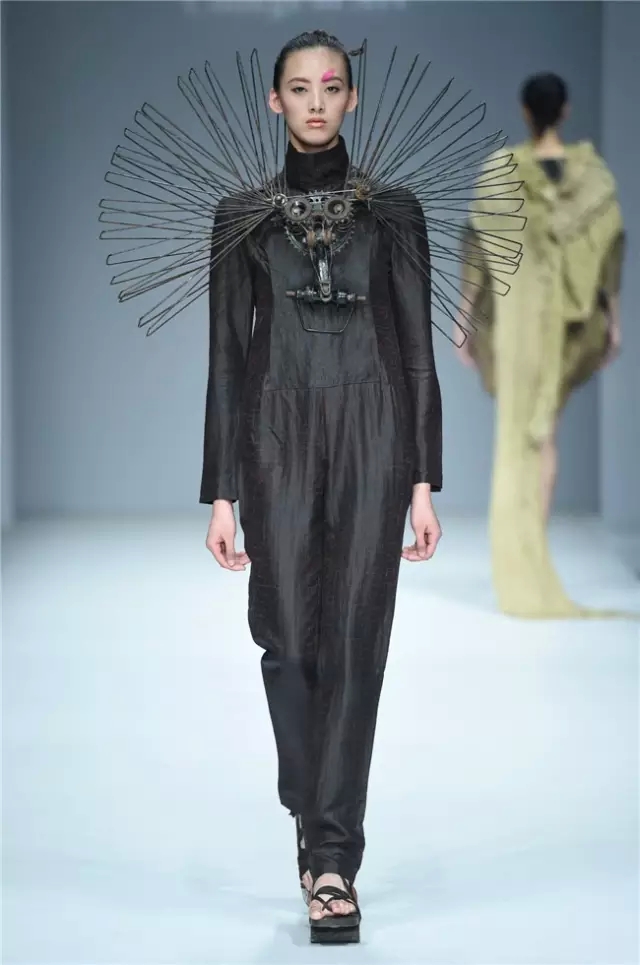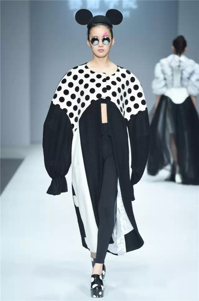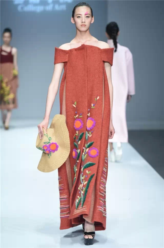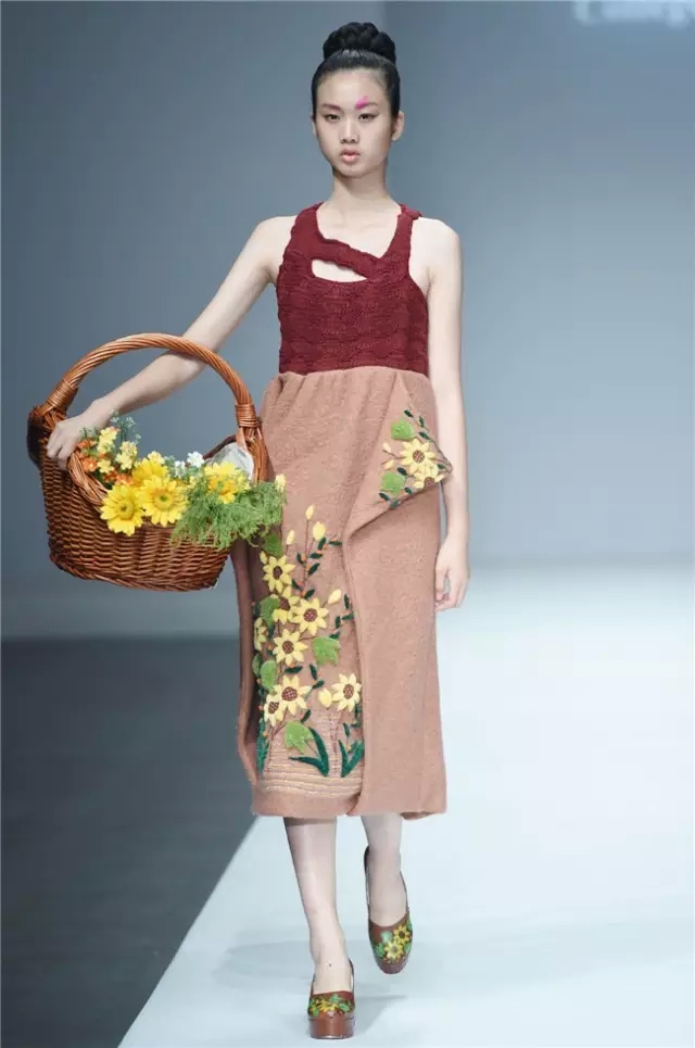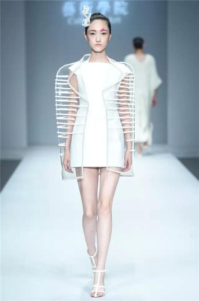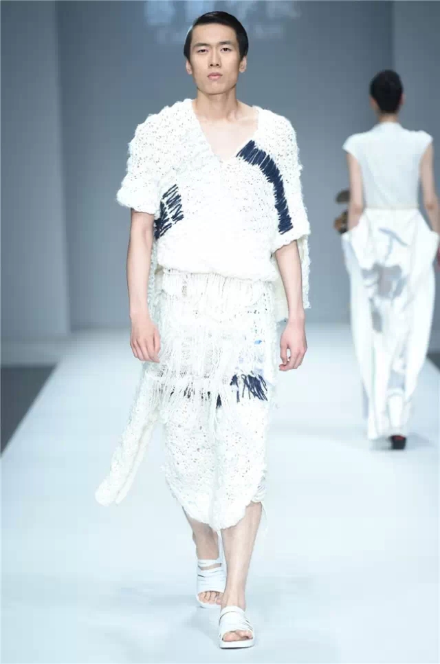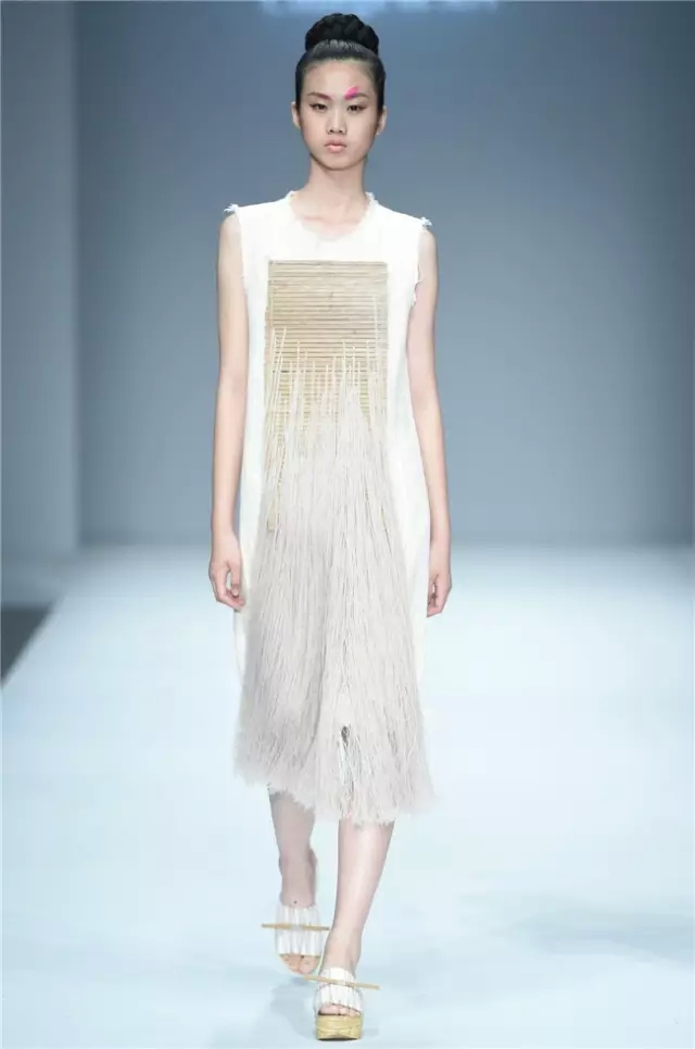 華南農業大學藝術學院的學生作品的主題是“初·格”,展示了25名畢業生的60套服裝設計作品。本場發布會作品以淡然超脫的氣質,從最原始、最安靜的內心出發,探究衣物的本來面貌,尋找衣與人最自然的關系。既不為流行所左右,也不被傳統所束縛,在單純、原始、超然的狀態下,從中國傳統文化中尋找設計的靈感。 古韻情懷讓這場嶺南風情秀展現了儒家的厚重感。當草鞋、斗笠、木屐等元素一一出現時,江邊的漁女、竹林間的隱士、沙漠中的獨行人等形象立刻豐滿了起來。荷花等常用的傳統符號元素在學生的運用下靈韻而又不失古樸。在現代部分,俏皮的廣式小格調融合著波點和畢加索式涂鴉,展現了對傳統的“反叛”。 從初格到出格,從內斂到釋放,學生們完成了一次執著的設計之旅。