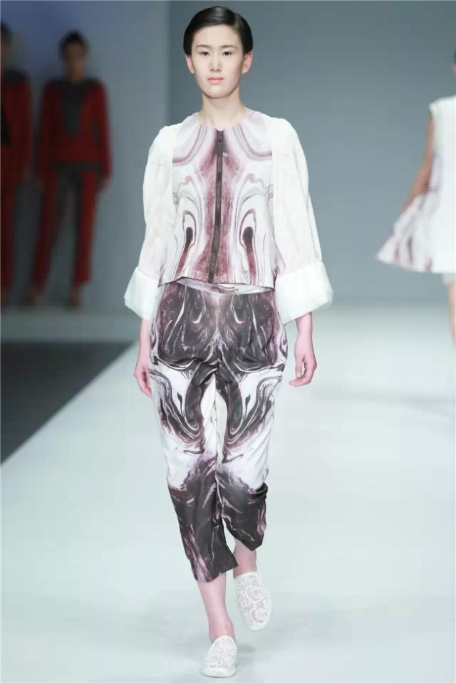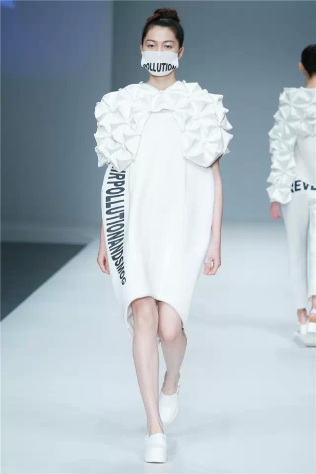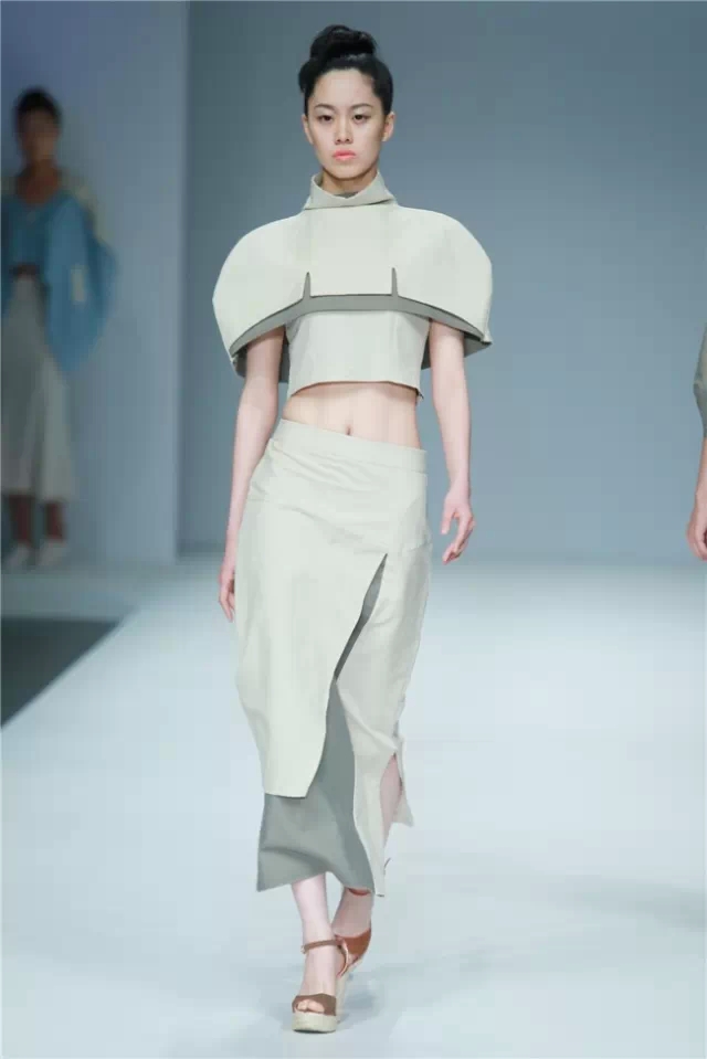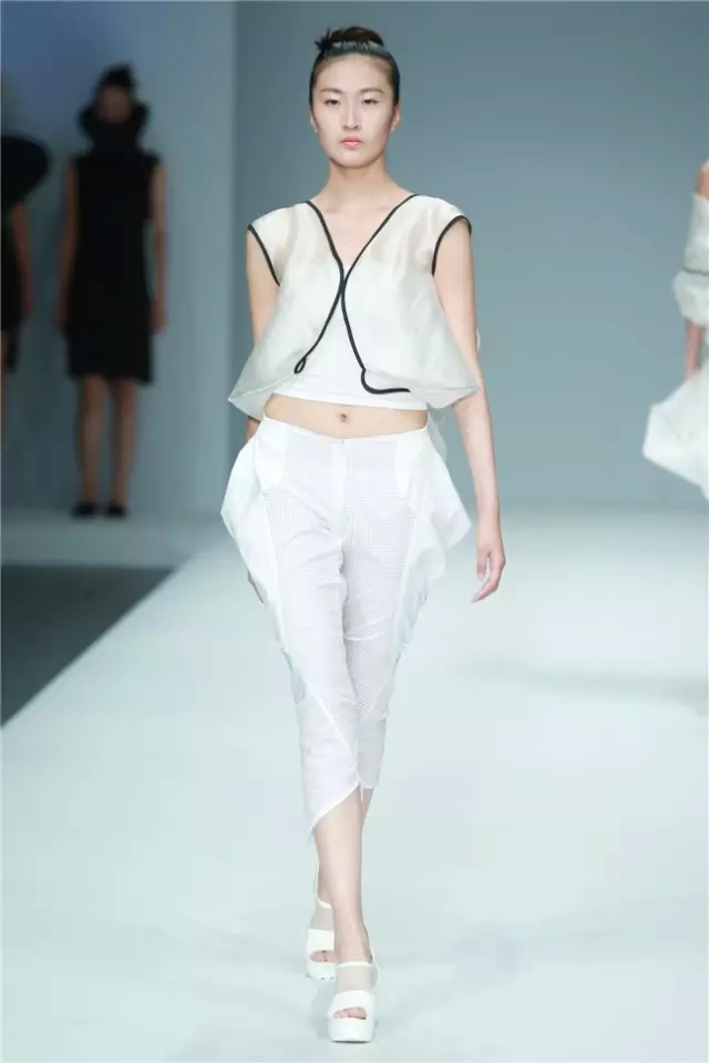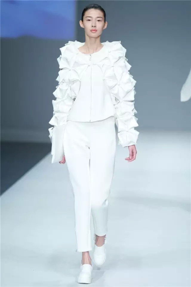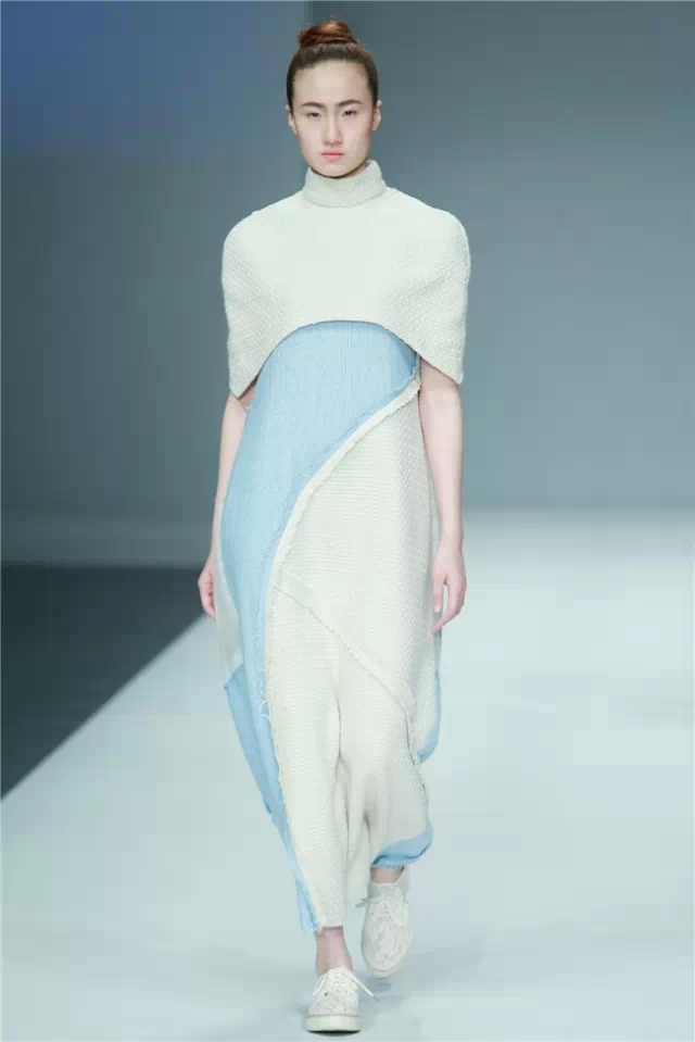 大連工業(yè)大學(xué)&英國南安普頓大學(xué)畢業(yè)生作品發(fā)布主題是“Mindfulness”:每一件服裝都蘊含著深切的情感,一針一線都記錄著莘莘學(xué)子們對作品的獨特見解,是衣服本身概念的升華,在與觀者的視覺交流中,傳遞著無盡的感情、思想與感動。 不論是白與黑,甚至是彩色的服裝,都給人干凈的感覺,有著貼近自然的狀態(tài)。這也許是因為整場秀幾乎都沒有撞色出現(xiàn),所給人帶來的視覺效果。 但不追求視覺沖擊不等于不追求創(chuàng)意,簡潔的造型中含有大量細節(jié),如同色面料的上的褶皺和立體感造型,又如網(wǎng)紗面料罩在鐳射面料上造就的迷幻視覺效果……這是一批兼容了東西方文化和現(xiàn)代設(shè)計理念、具有較強創(chuàng)意和實踐能力應(yīng)用型、復(fù)合型人才。(董笑妍)