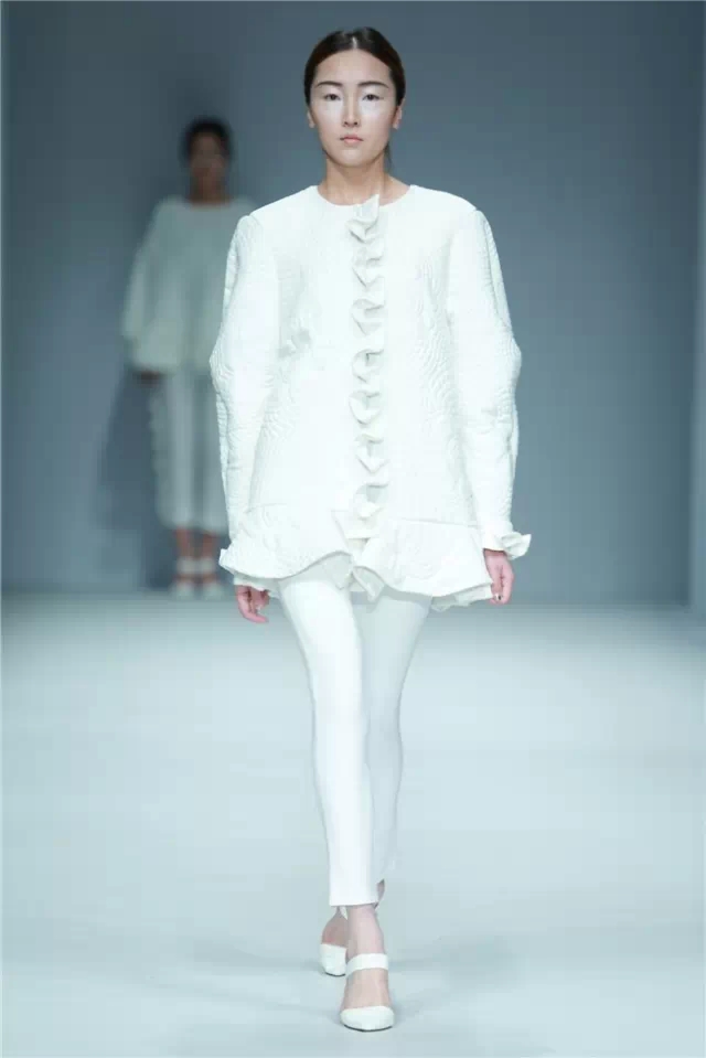 上海工程技術(shù)大學(xué)中法埃菲時裝設(shè)計師學(xué)院畢業(yè)生作品發(fā)布的主題是“現(xiàn)代遺產(chǎn)”,共有近20位學(xué)生的作品在此呈現(xiàn)。現(xiàn)代遺產(chǎn)是人類獻給未來的禮物,年輕的設(shè)計師們從文化、歷史、科技、建筑、考古等角度入手,通過對“文化想象”、“詩意技術(shù)”、“新生有機”三個方向的理解,挖掘出讓人為之觸動的靈感,用服裝語言探討這一廣泛的主題。 “現(xiàn)代”和“遺產(chǎn)”這兩個看似有些矛盾的詞語放在一起,起初令人費解,但意在時尚的輪回,也強調(diào)了創(chuàng)意突破界限的共通。 在本場發(fā)布會中,從各個藝術(shù)領(lǐng)域汲取而來的創(chuàng)作元素在動態(tài)中被展現(xiàn),它們不強硬、不單調(diào),但卻足夠鮮活而多樣。值得一提的是,本場秀中多套作品在腰部設(shè)計上獨具匠心,多彩的線條、臉譜式的圖案和搖擺中的流蘇展現(xiàn)出流動中的跨界風(fēng)景,輪回中的“現(xiàn)代遺產(chǎn)”在年輕設(shè)計師的心間手中留存時空。(黃天玉)