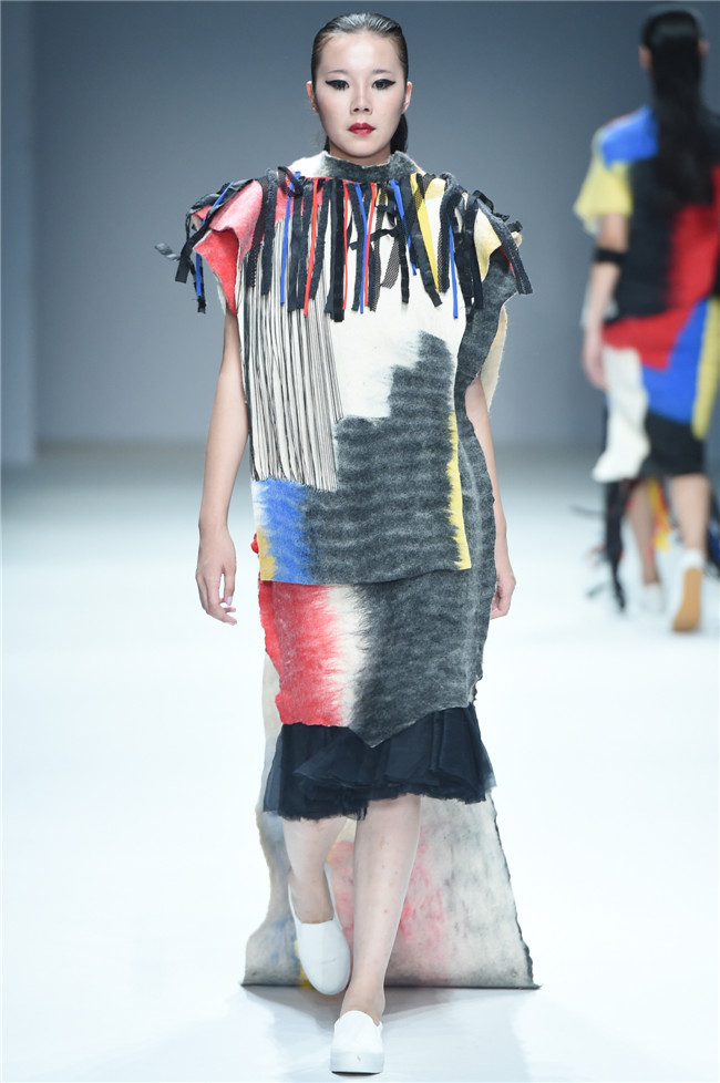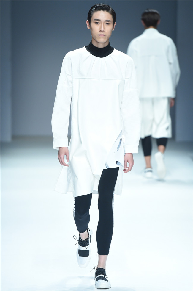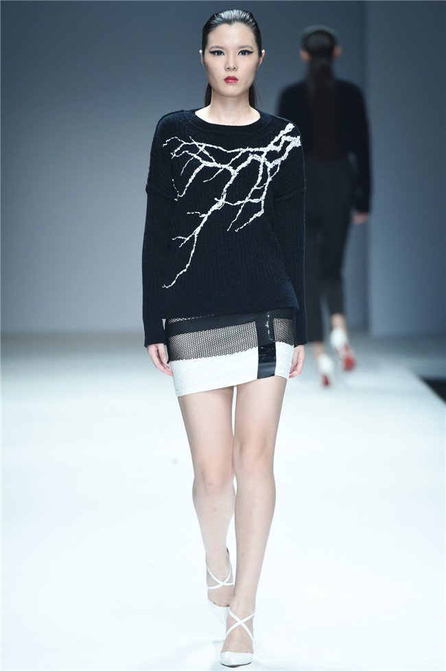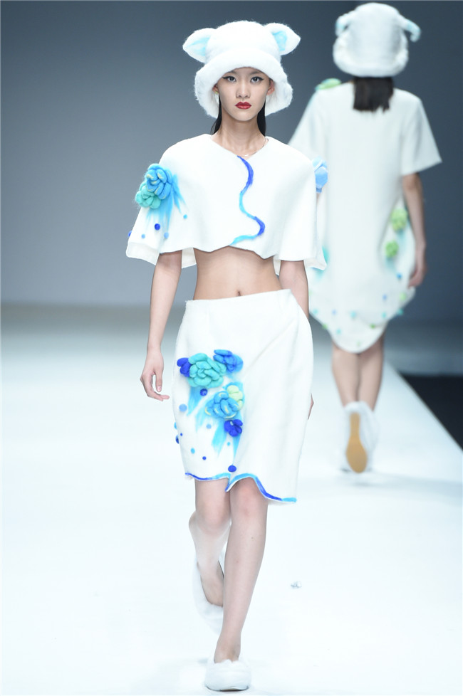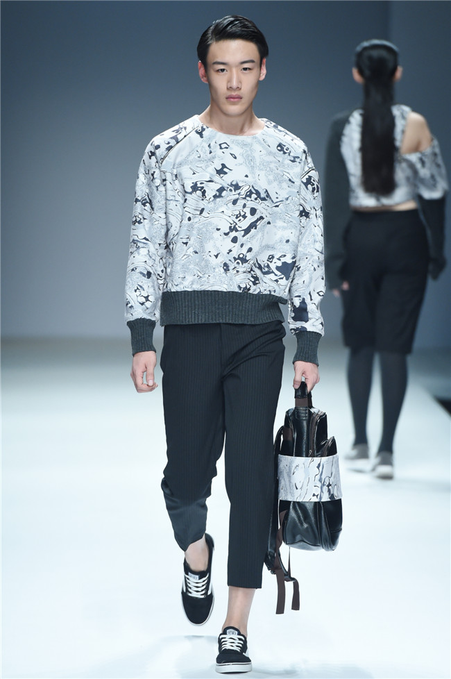 廈門理工學院設計藝術與服裝工程學院發布會的主題是“尚·廈”,展示了26名學生的3個系列共90多套作品,風格定位以創意成衣為主。 在本場發布中,精良的制作工藝是一大看點,不論是打破傳統的男裝裁剪廓形,還是傳統男裝版型基礎上演變來的創意夾克,本屆學生的作品很好地承襲了閩派男裝設計的工藝優勢,尤其是在時尚男裝概念的表現上,充分展現了學生們的創新能力。 本屆畢業生的作品雖然大多采用了保守沉穩的黑白色系,但不乏亮點,如以藍色為主打色的針織休閑毛衫,既采用了西服的經典廓形元素,又兼具針織毛衫的隨性與靈動。 當然,除了創意男裝成衣作品外,也有部分突破閩系男裝地域特色的時尚女裝作品。這些設計承載了畢業生們的個人興趣愛好或對現實生活的思索。比如有時下流行的多肉植物圖案為設計元素的女裝系列,還有以設計師本人卡通形象為主題的風格女裝,甚至還有把達利的超現實主義化作《永恒的記憶》圖案作為設計元素的作品。(賴松)