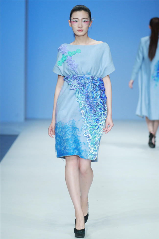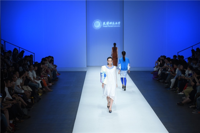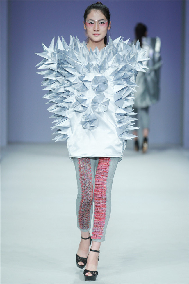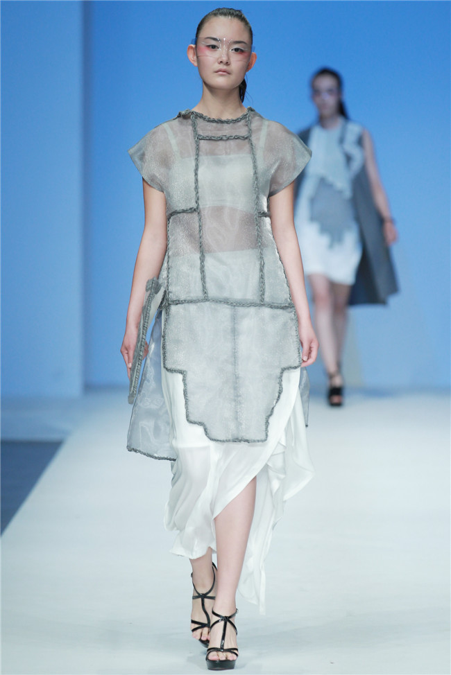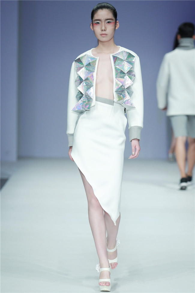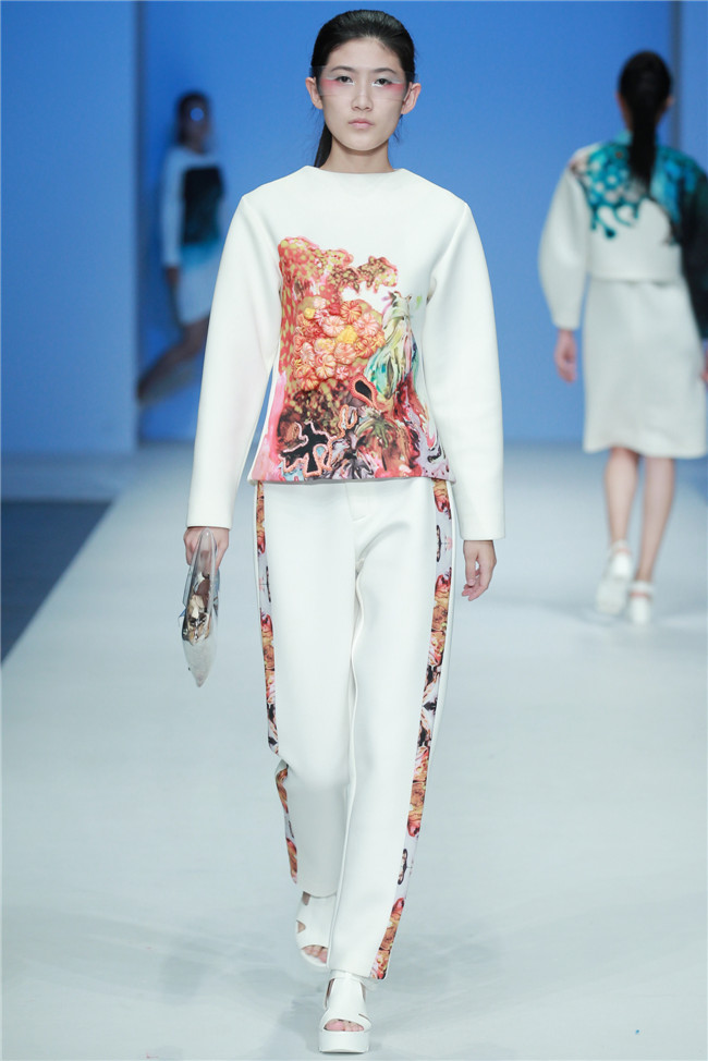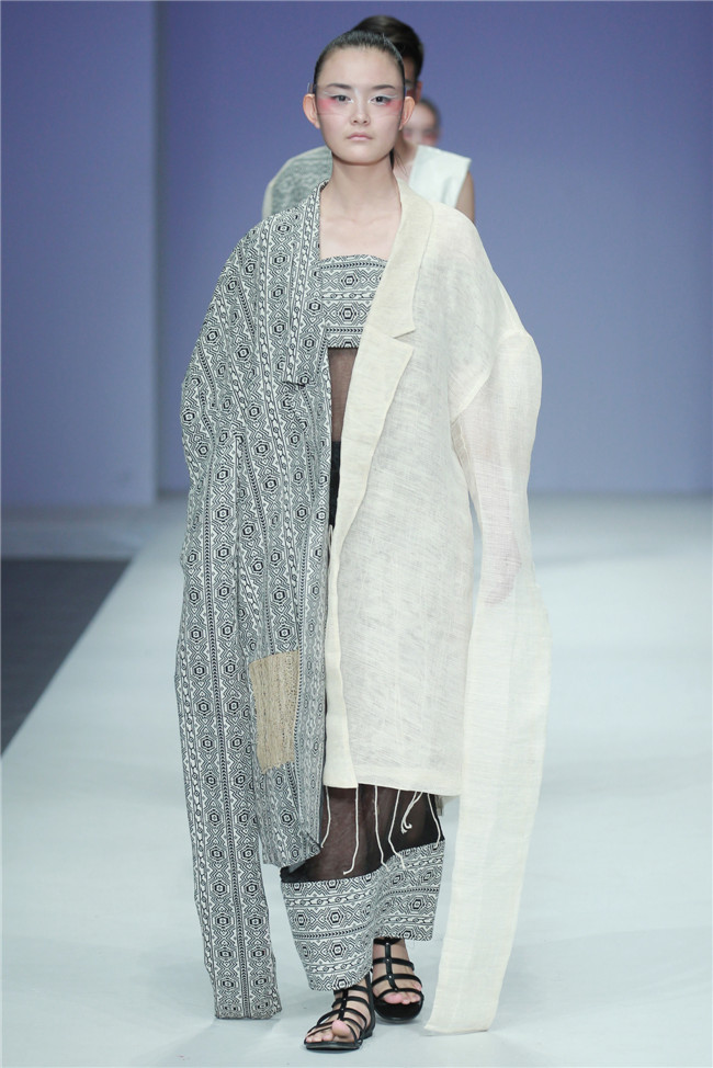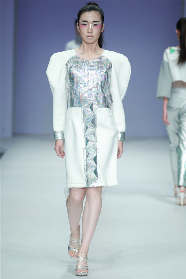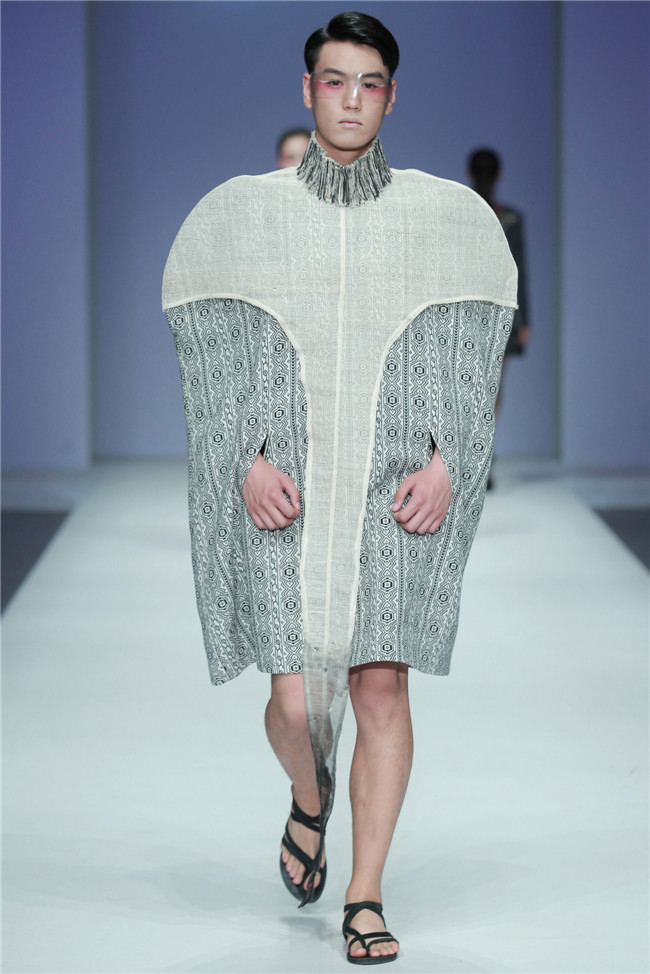 天津師范大學(xué)美術(shù)與設(shè)計(jì)學(xué)院的發(fā)布秀共有20名學(xué)生參與,發(fā)布作品102套,其中包括服裝設(shè)計(jì)專業(yè)、服裝表演與形象設(shè)計(jì)專業(yè)本科生18名,服飾文化專業(yè)研究生2名。值得一提的是,此次走秀的46名模特,均是來自該校服裝表演與形象設(shè)計(jì)專業(yè)的學(xué)生。 本場(chǎng)發(fā)布主題為“融·肆年”,廣義來說這一主題代表藝術(shù)與創(chuàng)新的共融,傳統(tǒng)與現(xiàn)代的并放;從狹義上則是學(xué)生本科四年所學(xué)專業(yè)知識(shí)的總結(jié)與融會(huì)貫通,通過此次畢業(yè)秀展示出極具時(shí)代特色和藝術(shù)審美的服飾作品。 在本場(chǎng)發(fā)布中,整體上既有大廓形的理念表現(xiàn),也有細(xì)膩柔和的肌理細(xì)節(jié);有現(xiàn)代感、未來感的硬朗,也有傳統(tǒng)元素下的溫婉。同時(shí)在創(chuàng)作中更是注重在工藝、材質(zhì)上的表現(xiàn),工藝采用數(shù)碼印花、拼貼、立構(gòu)等表現(xiàn)力更豐富,材質(zhì)上慢回彈的太空棉、刻字膜,麻料與毛呢混搭等效果層出不窮,纖維再造、編織、釘珠、反光膜等體現(xiàn)了細(xì)節(jié)處的精致。(賴松)