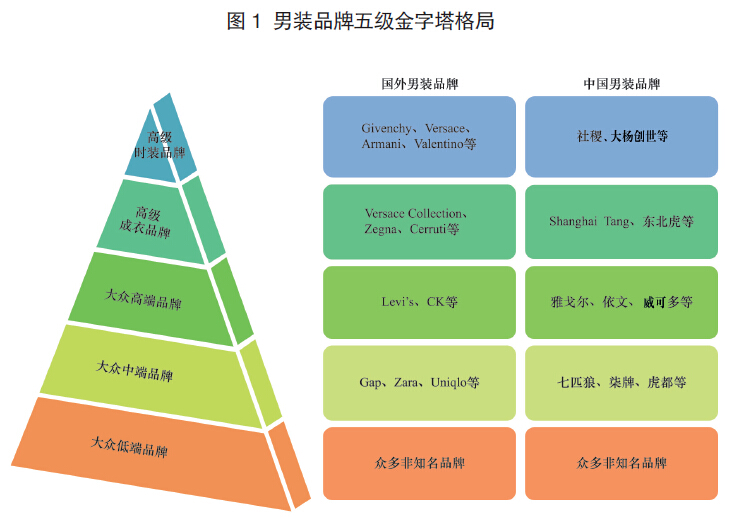 全球及中國的男裝品牌已形成一個五級金字塔格局。國外男裝成衣品牌全球化運營成熟,而中國男裝高級成衣品牌數量少,國際影響力有限。創立于我國香港并融合復興中式傳統和時代流行的第一個奢侈品品牌——上海灘(Shanghai Tang)是目前為數不多的足跡遍布上海、紐約、巴黎、倫敦、東京、馬德里等國際化大都市的中國品牌。中國男裝大眾品牌從高到低數量眾多,同時受到國外男裝品牌的沖擊較大。