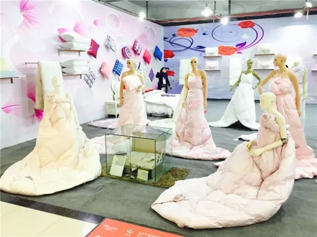 今年以來,羽絨寢具成為市場的增長點。本屆羽博會一些寢具企業陳列了創意展位。