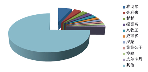 根據中華全國商業信息中心的統計,2016年4月,全國重點大型零售企業女裝銷售前十位品牌市場綜合占有率合計為14.91%,哥弟、VERO MODA和ONLY和占據前三位。