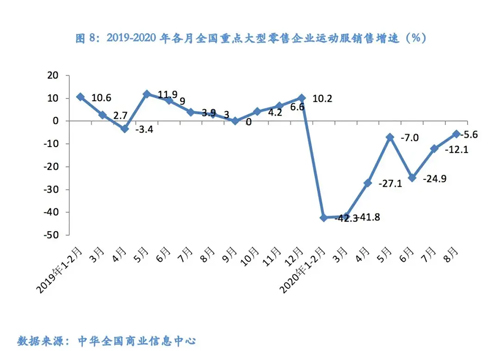 運動服:根據(jù)中華全國商業(yè)信息中心統(tǒng)計數(shù)據(jù),2020年8月全國重點大型零售企業(yè)運動服零售量同比下降5.6%,降幅相比上月收窄了6.5個百分點。