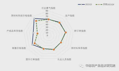 2021年10月,中國紡織工業聯合會針對紡織企業經營管理者開展了企業經營現狀調查工作。經過對有效數據的整理、分析,2021年三季度紡織企業景氣指數較二季度有所回落,行業對四季度的預期判斷較為謹慎。