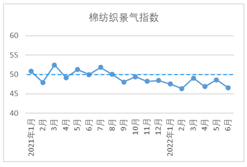 6月,企業(yè)信心指數為43.89,較5月下降2.33,為今年以來最低值。隨著全球通脹持續(xù),市場對于全球經濟放緩的擔憂加劇。6月21日,美國《維吾爾強迫勞動預防法案》(UFLPA)正式執(zhí)行,出口和內需市場均面臨極大的不確定性,疊加棉花期貨盤面走勢下行等因素影響,下游不敢下單,市場基本處于暫停狀態(tài),普遍對于后市信心表現不足。因此,進一步激發(fā)市場活力,提振市場信心是當前最主要的任務。