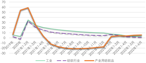 注:自2022年1月1日起,產業用紡織品行業中部分商品海關編碼有所調整,由于缺少同口徑同比數據,故本期發布的行業進出口同比增速數據僅供參考。