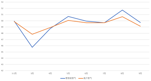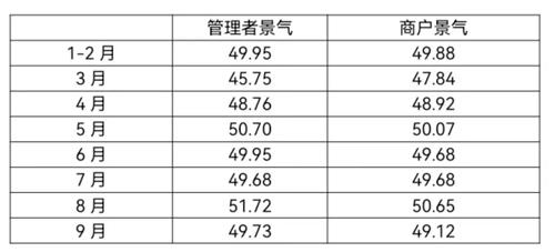 景氣方面,2022年1-9月,紡織服裝專業(yè)市場管理者景氣與商戶景氣走勢基本一致。管理者景氣平均指數(shù)為49.53,商戶景氣平均指數(shù)為49.48,均低于50榮枯線;1-9月專業(yè)市場運管理者與商戶整體信心不足,景氣指數(shù)偏低。