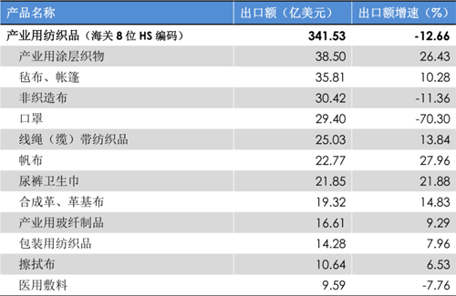 注:自2022年1月1日起,產業用紡織品行業中部分商品海關編碼有所調整,由于缺少同口徑同比數據,故本期發布的行業進出口同比增速數據僅供參考。