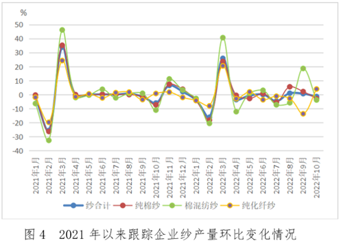 跟蹤集群紡紗產能同比下降1.2%,織布產能同比增加3.8%。