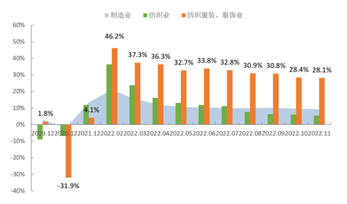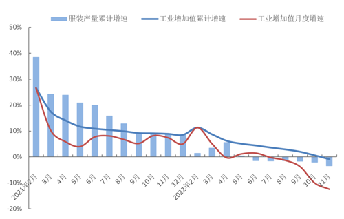 圖1 2022年1-11月服裝行業(yè)生產(chǎn)增速情況