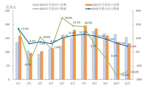圖3 2022年1-11月我國服裝及衣著附件出口情況