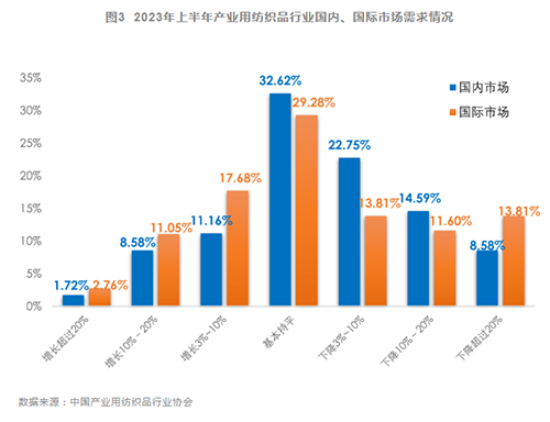 2023年上半年,全球經濟處于脆弱的復蘇之中,雖然增長前景有所改善,但仍然面臨高度不確定性;國內經濟回升向好,但經濟持續恢復發展的基礎仍不穩固。我國產業用紡織品行業繼續處于防疫物資需求爆發增長再斷崖下降后的調整期,大幅投資的產能釋放沖擊供需體系,相關領域內競爭加劇;防疫物資產業鏈以外的其他領域依然保持了較為穩定的發展。
