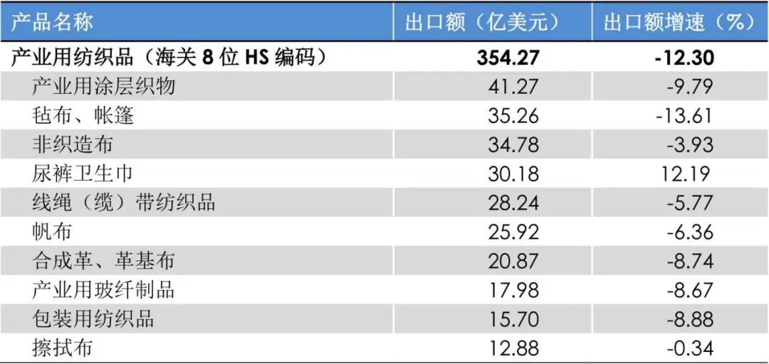 2023年1-11月產(chǎn)業(yè)用紡織品行業(yè)及主要產(chǎn)品出口情況