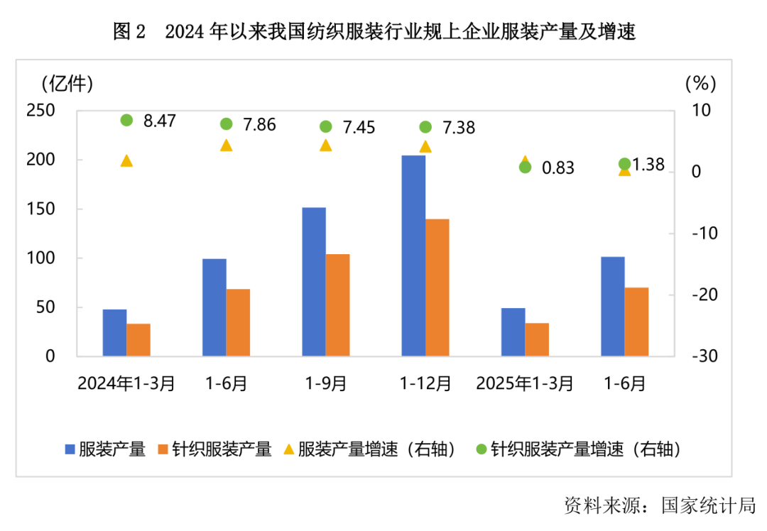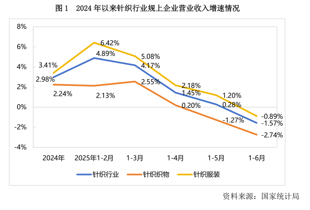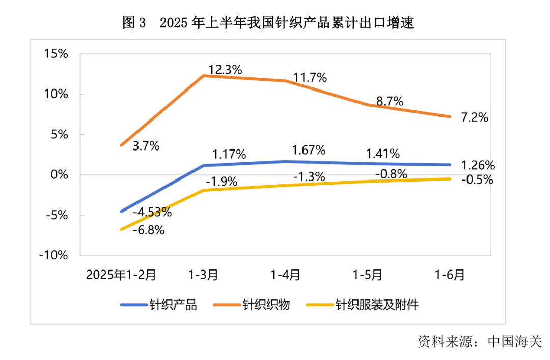 2025年上半年,受地緣政治局勢緊張、美國關稅政策持續擾動等因素影響,外部環境的不確定性顯著加劇。得益于我國各項提振消費擴大內需政策落地顯效,以及多元化國際市場戰略推進,我國針織行業總體運營穩定,出口實現小幅增長,行業發展韌性顯現。