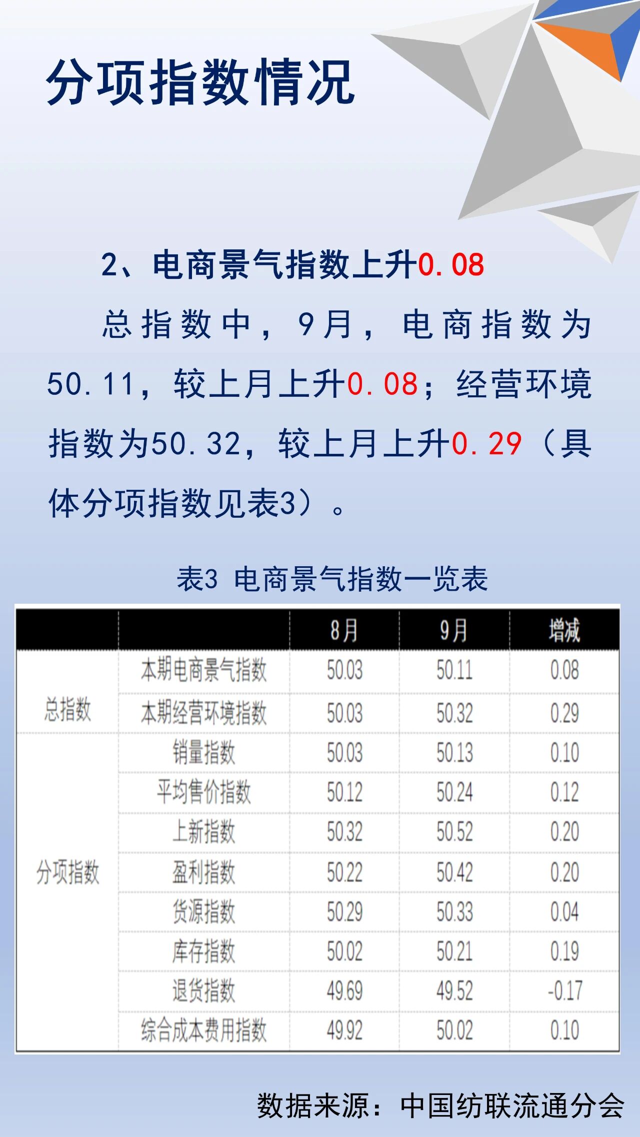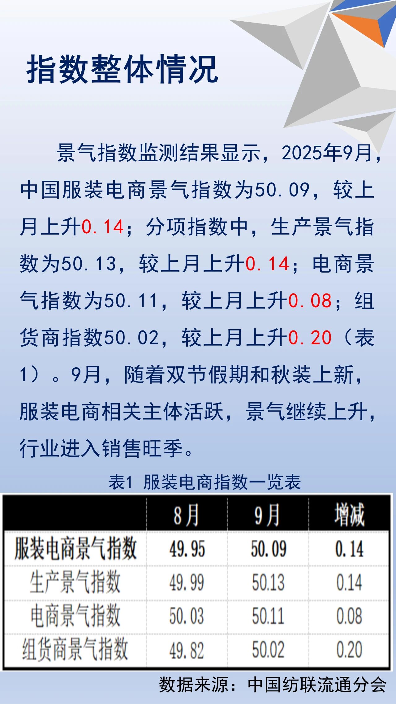 9月中國服裝電商景氣指數上升