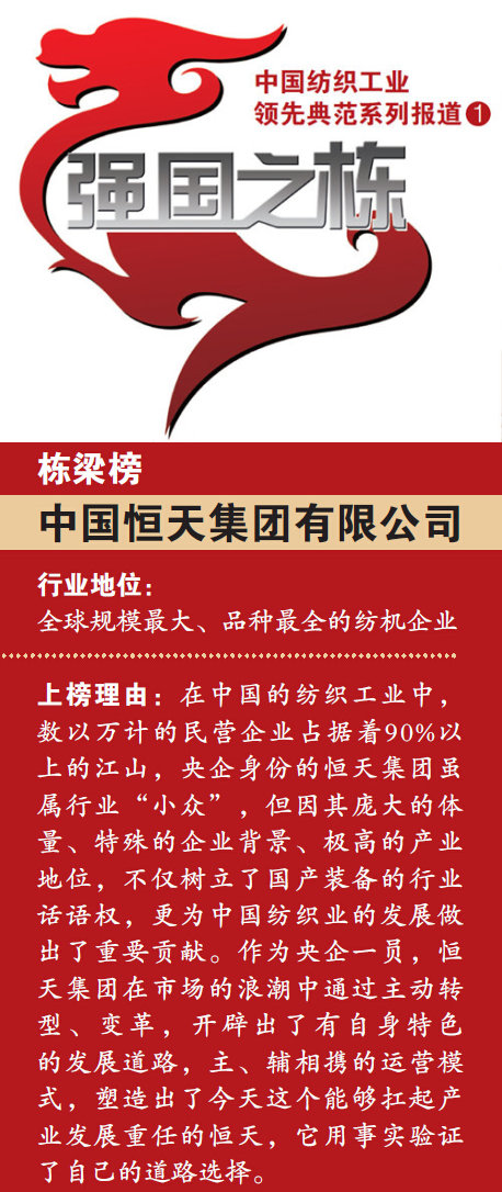 “十二五”期間,中國紡織產業在新一輪的市場角逐中成功晉級,并在全球業界表現出了更強勁的競爭力。當然,中國紡織產業的地位依托于中國紡織企業的不斷強大,在這個群體中,中國恒天集團有限公司(簡稱“恒天集團”)自是不可或缺的一員。