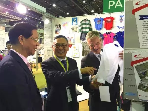徐迎新副會長在東渡展位上與東渡董事長徐衛民深入交談。 “本次參展的目的是接觸新客戶,拓展市場,將東渡品牌、東渡文化傳遞出去,開拓視野。另一方面希望能與外商近距離接觸,獲得即時資訊。在開拓國外市場而言,鞏固原有的北美、澳洲、日本等國家和地區的傳統市場外,充分發揮新加坡、香港貿易公司的優勢,進一步調整出口市場結構,努力尋求新的出口市場,開發多元市場,實施市場多元化戰略。” 展位現場 ,徐衛民表示這次參展感覺效果不錯,希望下次參展能拿到一個大點的展位,更好地展示品牌形象。另外,他還積極邀請主辦方領導到公司總部參觀,更全面深入地了解東渡旗下童裝品牌。