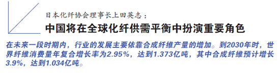 在本屆中國(guó)國(guó)際化纖會(huì)議上,日本化纖協(xié)會(huì)理事長(zhǎng)上田英志表示,自1990年起,全球纖維消費(fèi)量都處于增長(zhǎng)階段。其中,第一增長(zhǎng)階段源于棉纖維產(chǎn)量的增加,第二增長(zhǎng)階段源于棉纖維及合成纖維產(chǎn)量的增加,第三個(gè)階段主要依靠合成纖維產(chǎn)量的增加。根據(jù)預(yù)期,隨著化纖工業(yè)的繼續(xù)發(fā)展,在未來一段時(shí)期內(nèi),行業(yè)會(huì)一直處于第三個(gè)增長(zhǎng)階段。到2030年時(shí),世界纖維消費(fèi)量年復(fù)合增長(zhǎng)率為2.95%,達(dá)到1.373億噸,其中合成纖維預(yù)計(jì)增長(zhǎng)3.9%,達(dá)到1.034億噸。