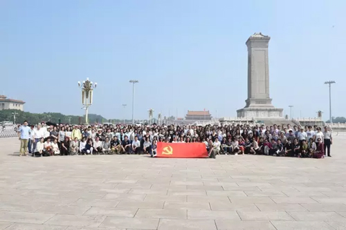 當走進天安門廣場,站在人民英雄紀念碑前,全體黨員感受到先烈浴血奮戰的艱辛,銘記歷史、緬懷先烈,為的是更好地傳承黨的優良傳統與無私奉獻的精神;當進入毛主席紀念堂進行瞻仰活動時,全體黨員深情緬懷偉大領袖,紀念先輩、感恩領袖,為的是不忘中國共產黨為人民服務的宗旨,不忘黨章賦予黨員的使命與責任;當登上天安門城樓,全體黨員激動地合影留念,不禁回想起那記憶中的歷史時刻,珍藏下在黨的95歲生日之際的難忘回憶。
