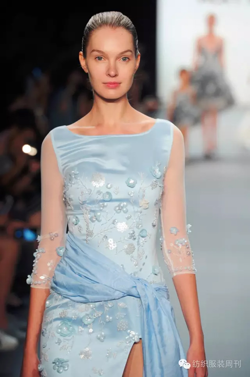 工藝細節方面,本季設計則運用了蘇繡、提花、印花、珠繡等工藝,尤其是從細節上突顯許馨尹最擅長的高端禮服設計。