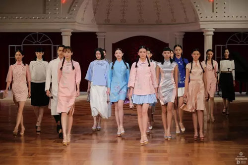 以上下分身的民國學生裝為原型打造的清新斜襟衫,出現在T臺上。與以往NE?TIGER發布會中所強調的華美風韻有所不同,西風東漸之下的民國時尚更加簡約、實用,這一特點在此系列中體現得尤為突出。