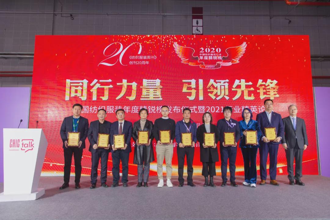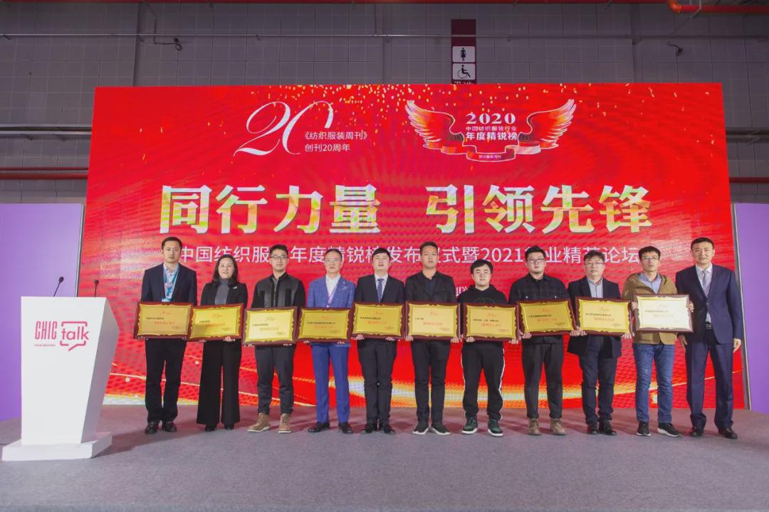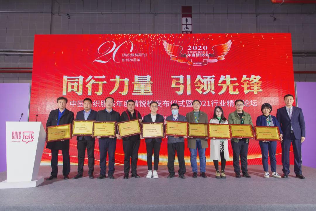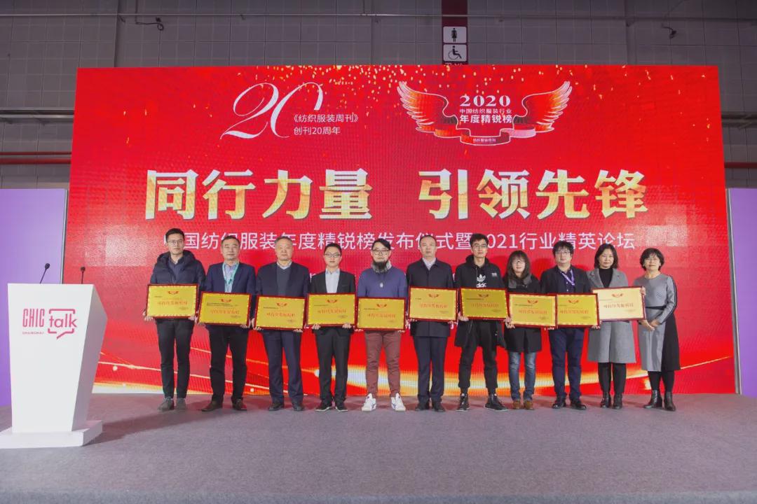 3月17日,中國紡織工業(yè)聯(lián)合會春季聯(lián)展開幕首日,中國紡織服裝年度精銳榜發(fā)布儀式暨2021行業(yè)精英論壇在國家會展中心(上海)1號館CHIC TALK區(qū)舉行。 活動現(xiàn)場發(fā)布了2020中國紡織服裝年度精銳榜、“強(qiáng)國同行力量、行業(yè)引領(lǐng)先鋒”上榜企業(yè)、代表共計70家,在行業(yè)領(lǐng)導(dǎo)、知名專家、展會重要展商嘉賓、權(quán)威媒體見證下共享榮耀時刻,共同學(xué)習(xí)先進(jìn)企業(yè)的經(jīng)營之道、交流行業(yè)先進(jìn)發(fā)展的經(jīng)驗,為實(shí)現(xiàn)“科技、時尚、綠色”的中國紡織服裝產(chǎn)業(yè)夢想積蓄更多能量。